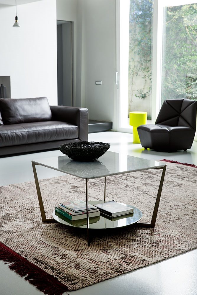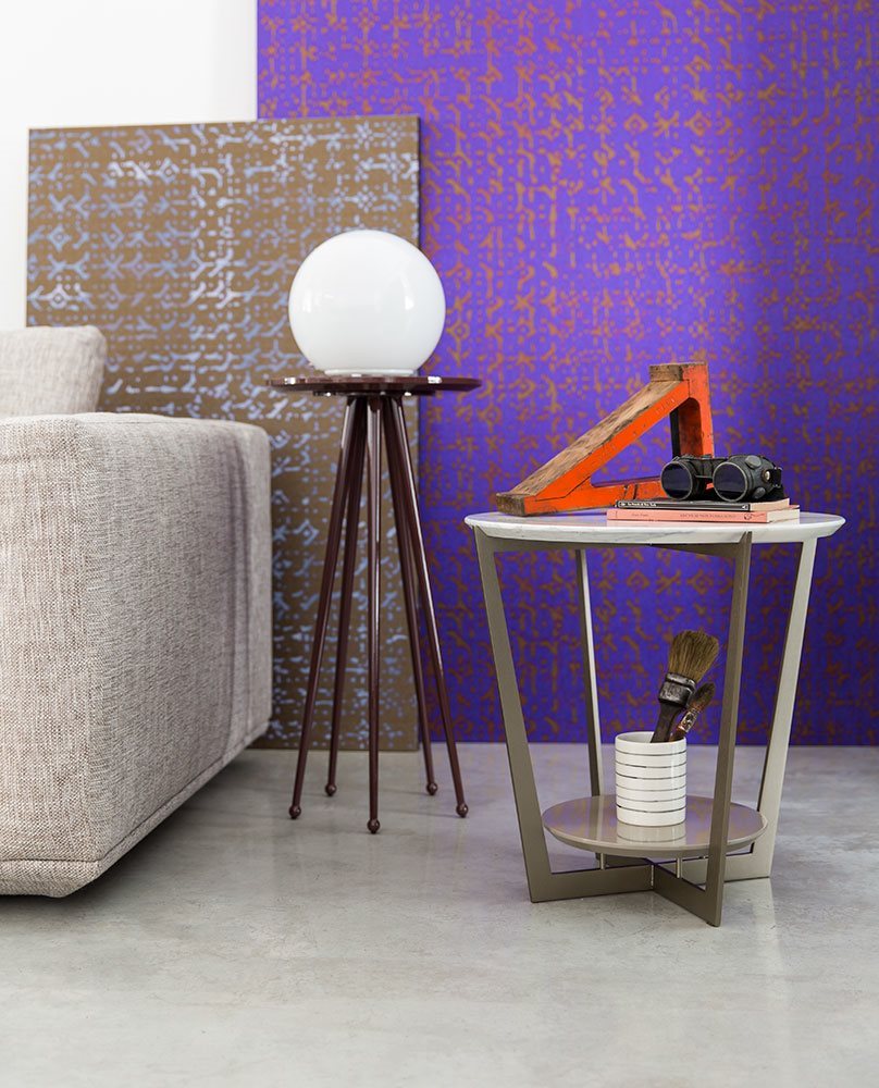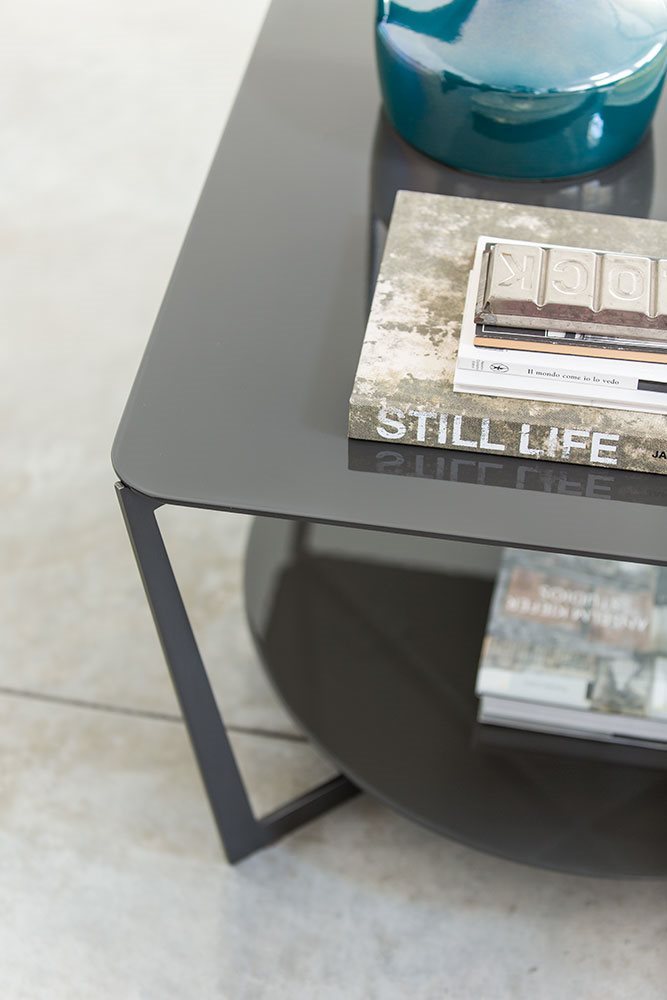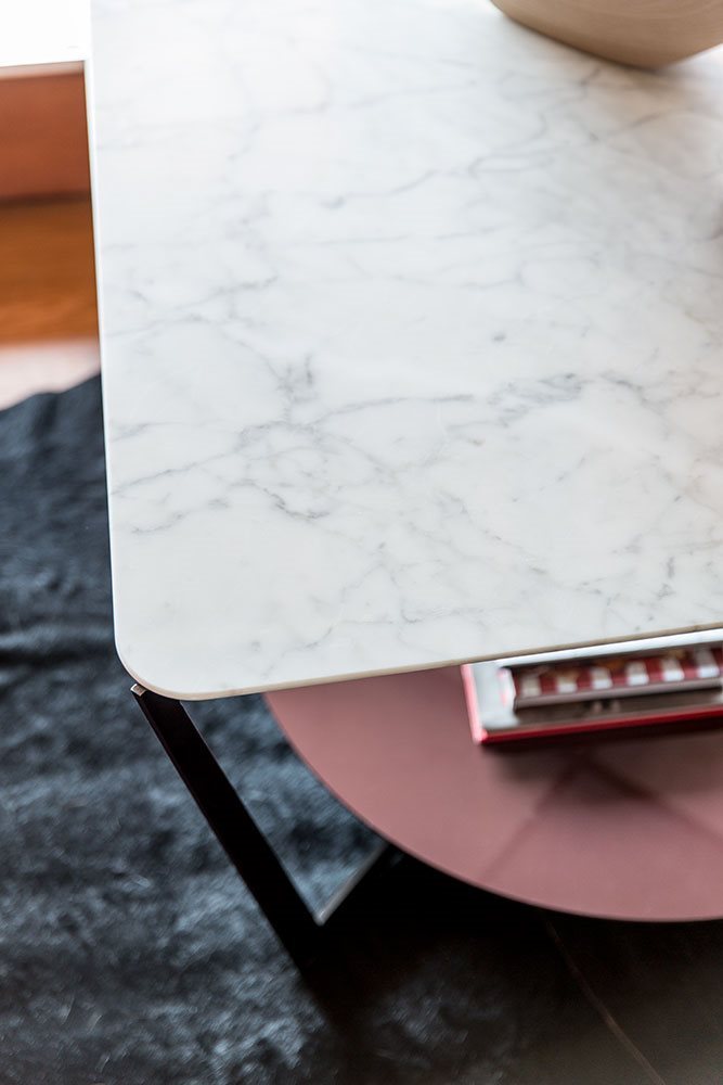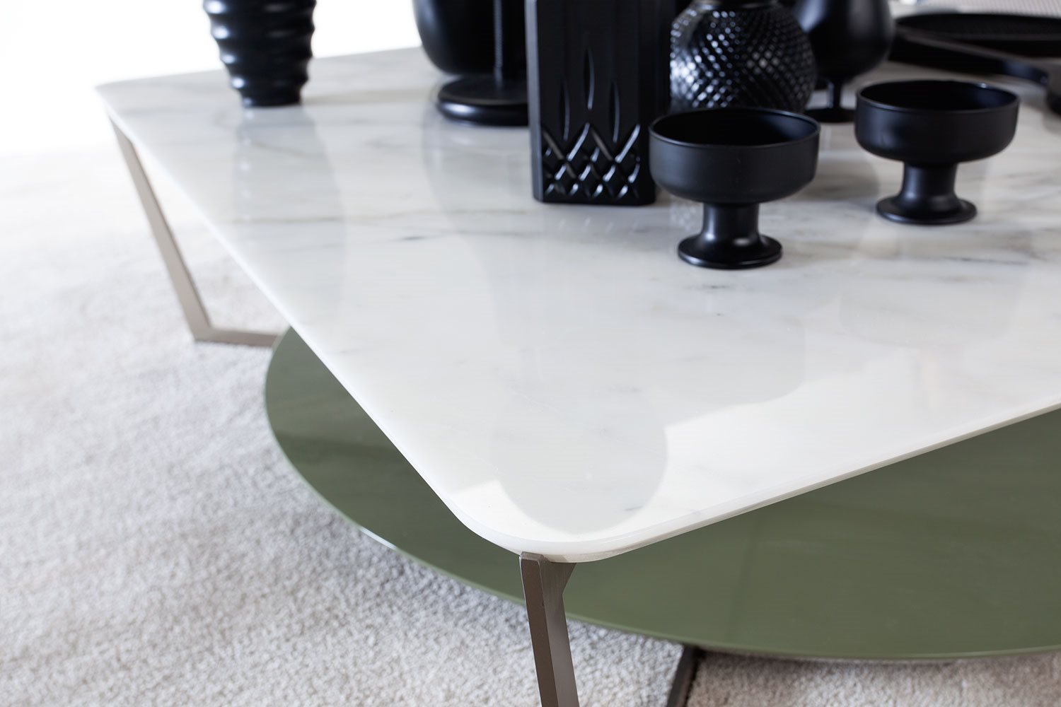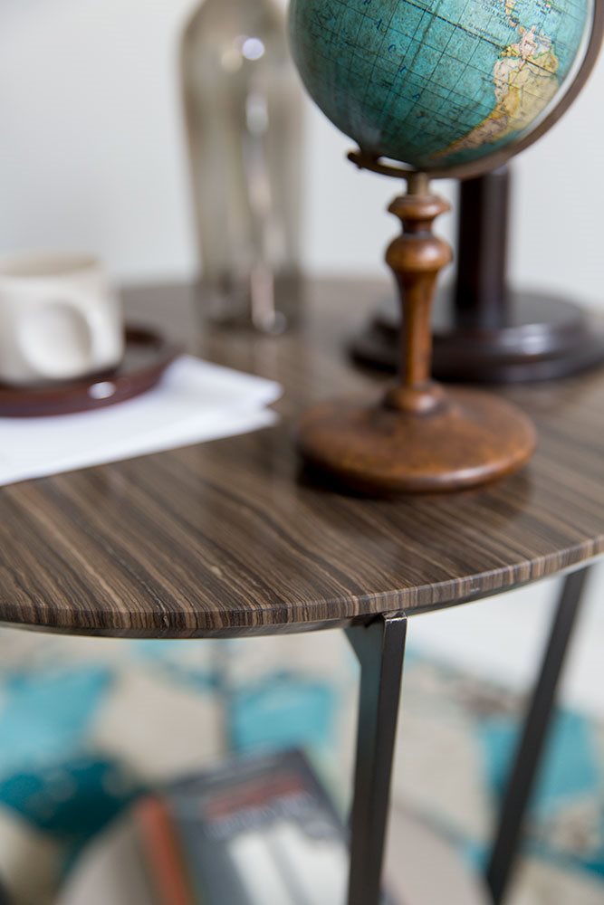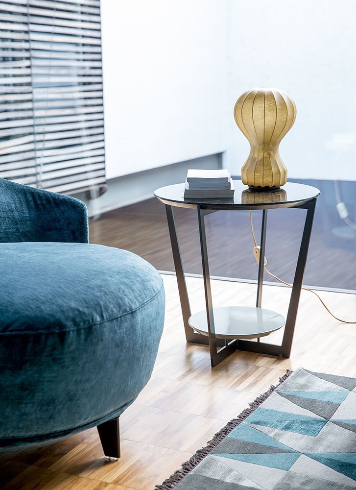 Small tables. Structure: in metal. Structure finishing: French Bronze or Gun Metal. Top high (1): marble. Top low (2): MDF. Top low finishing (2): lacquered.