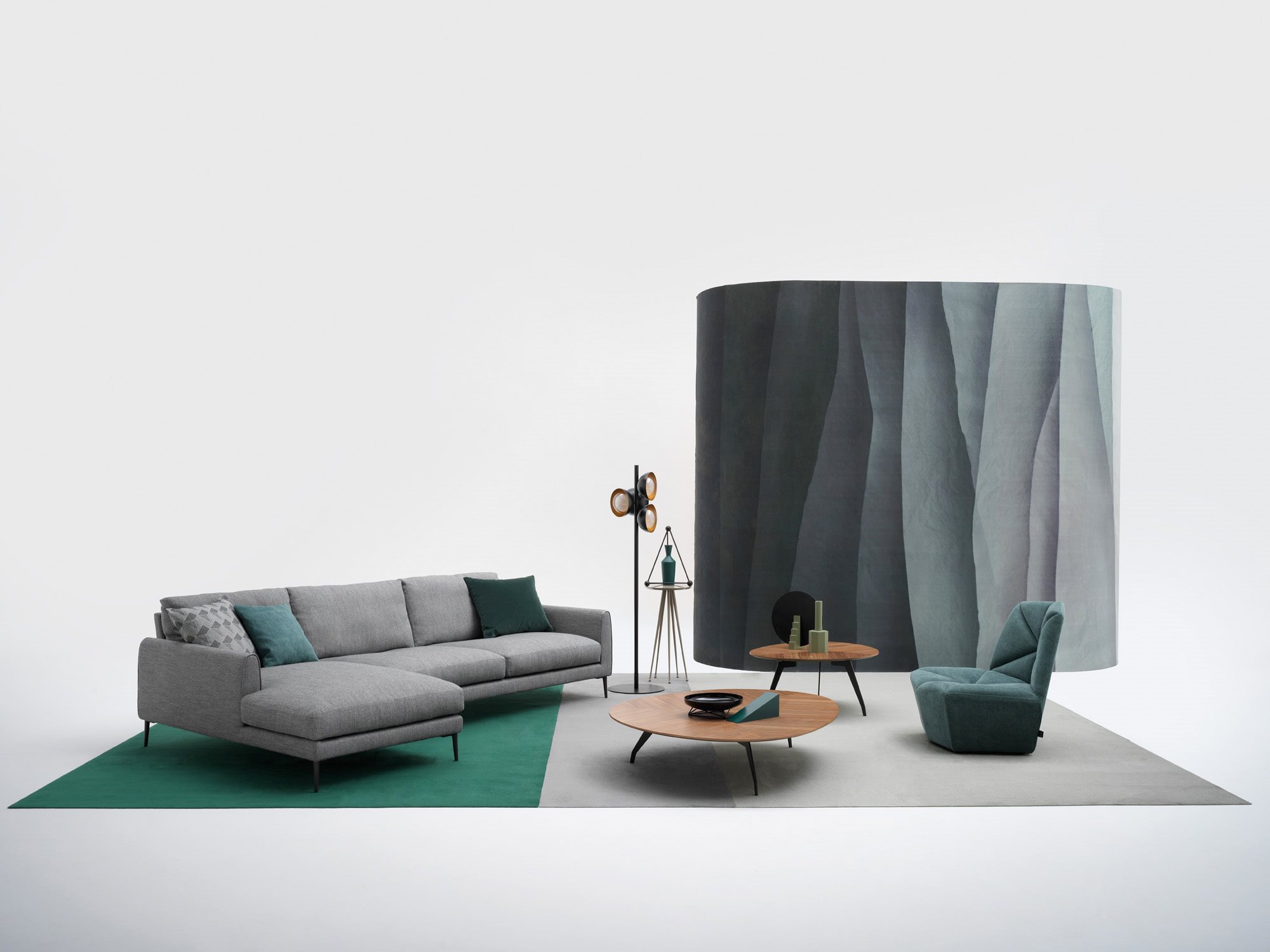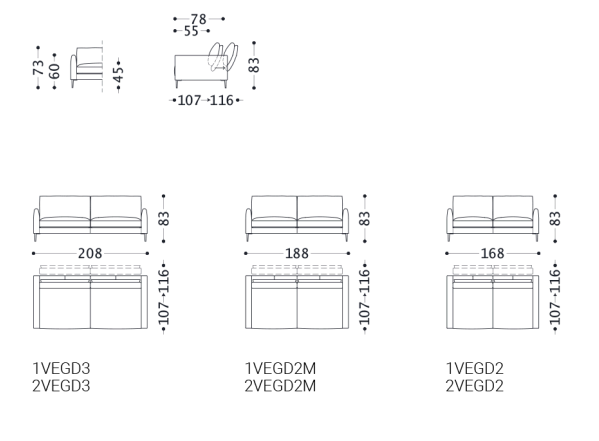 One of Vega sofa’s distinctive features is the flexibility of use combined with a modern design and its simple and contemporary lines. The collection’s characteristic element is the sliding mechanism incorporated in the backrest that allows you to choose between two different depths; one that is suitable for sitting while the other is ideal for relaxation. At the same time, the slender design of the feet, available in chrome and gunmetal grey version, along with a small armrest give the sofa a fresh and modern look. Composite elements with an inclined cut and chaise longue complete the seating system, allowing to create unusual and customized compositions for multiple uses.
