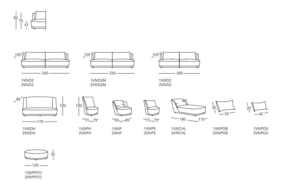 Sofas VIVIEN / GRACE / AUDREY are characterized by rounded and romantic lines. They are the result of a perfect combination between a classic and contemporary style. The high smooth back cushions VIVIEN and the special back cushions with diamond sewing of the models AUDREY and GRACE make them unique pieces, with three different souls able to satisfy the needs of the most demanding interior designers.