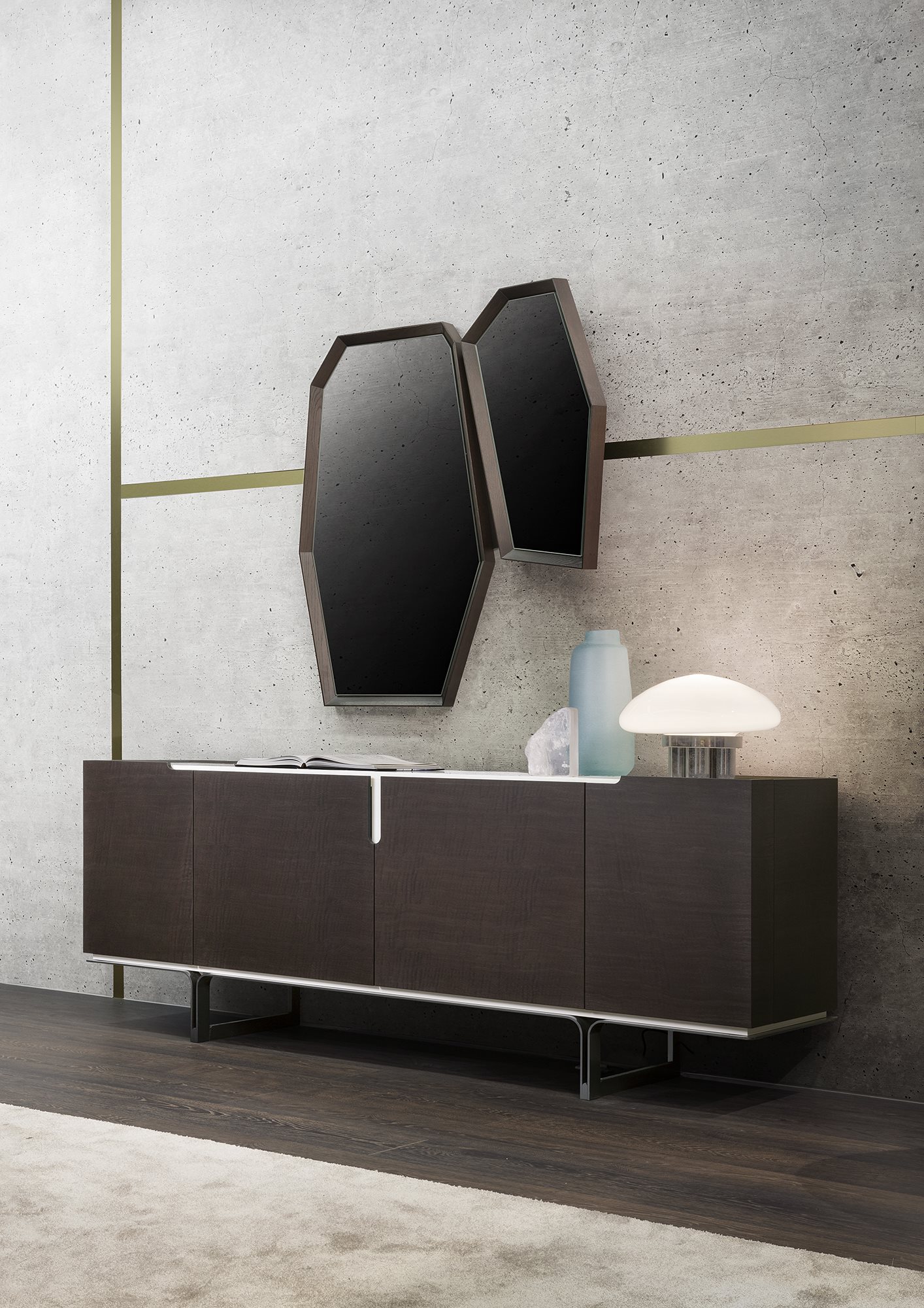 Well-balanced proportions and perfectly assorted materials emphasize the minimalist volumes of this range without detracting from the formal value of these particular furnishing elements.