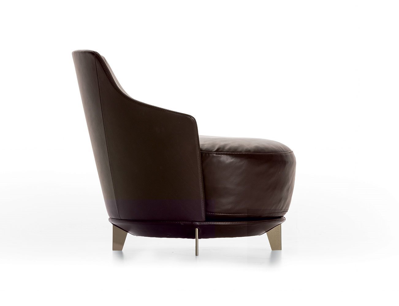 Poltrona. Struttura portante: multistrato, massello di legno. Imbottiture: Schienale in poliuretano espanso (densità 21 Kg/mc). Seduta in piuma d’oca con inserto in poliuretano espanso (densità 40 Kg/mc). Piedino: in metallo (finiture French Bronze o Gun Metal).
