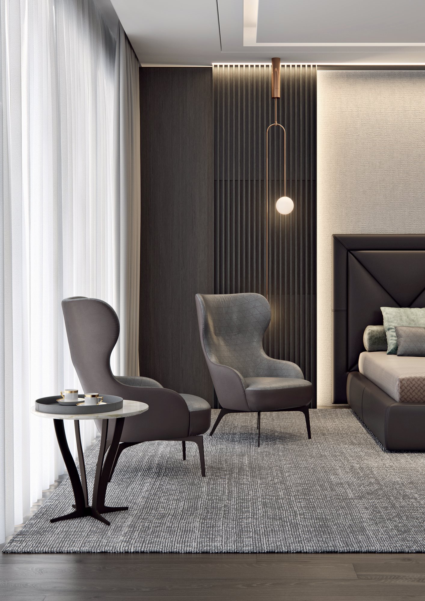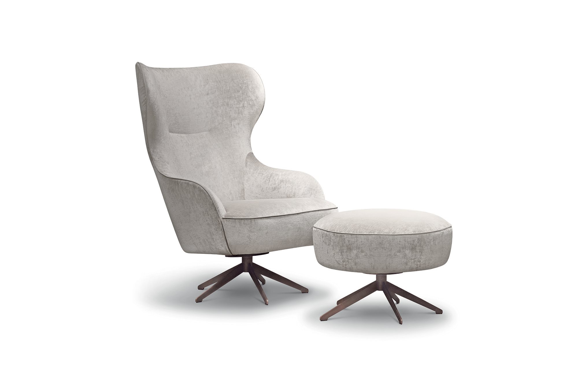 The Melania bergère armchair brings style and elegance to any setting with its attractive, shapely outline. The design of the outer frame is transformed into a soft, comfortable seat, thanks to the curved head rest and soft pouf. It is also available in a swivel version or with modern look feet.An armchair that expresses a classic elegance with a modern interpretation.