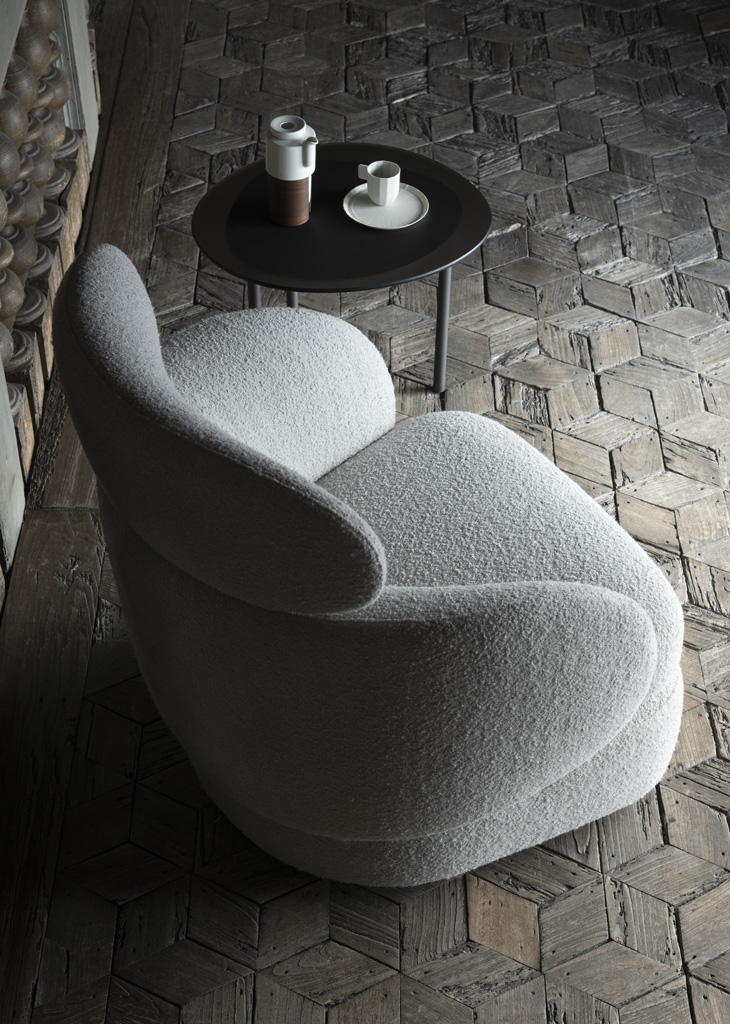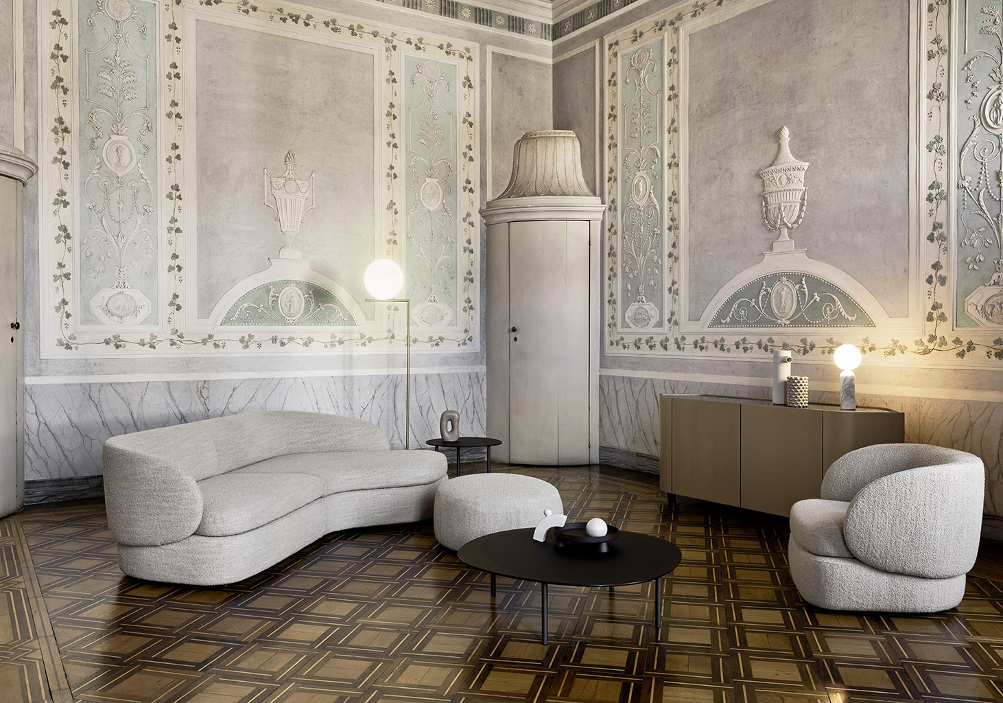 Sobi is a diverse collection of upholstered furniture made up of sofas, a single chaise longue, an armchair and a footstool. The collection represents a continuation of the journey, which began with the Raku collection, to create a sophisticated yet homely dimension of comfort. SOBI is substantial in size and has soft, organic shapes.