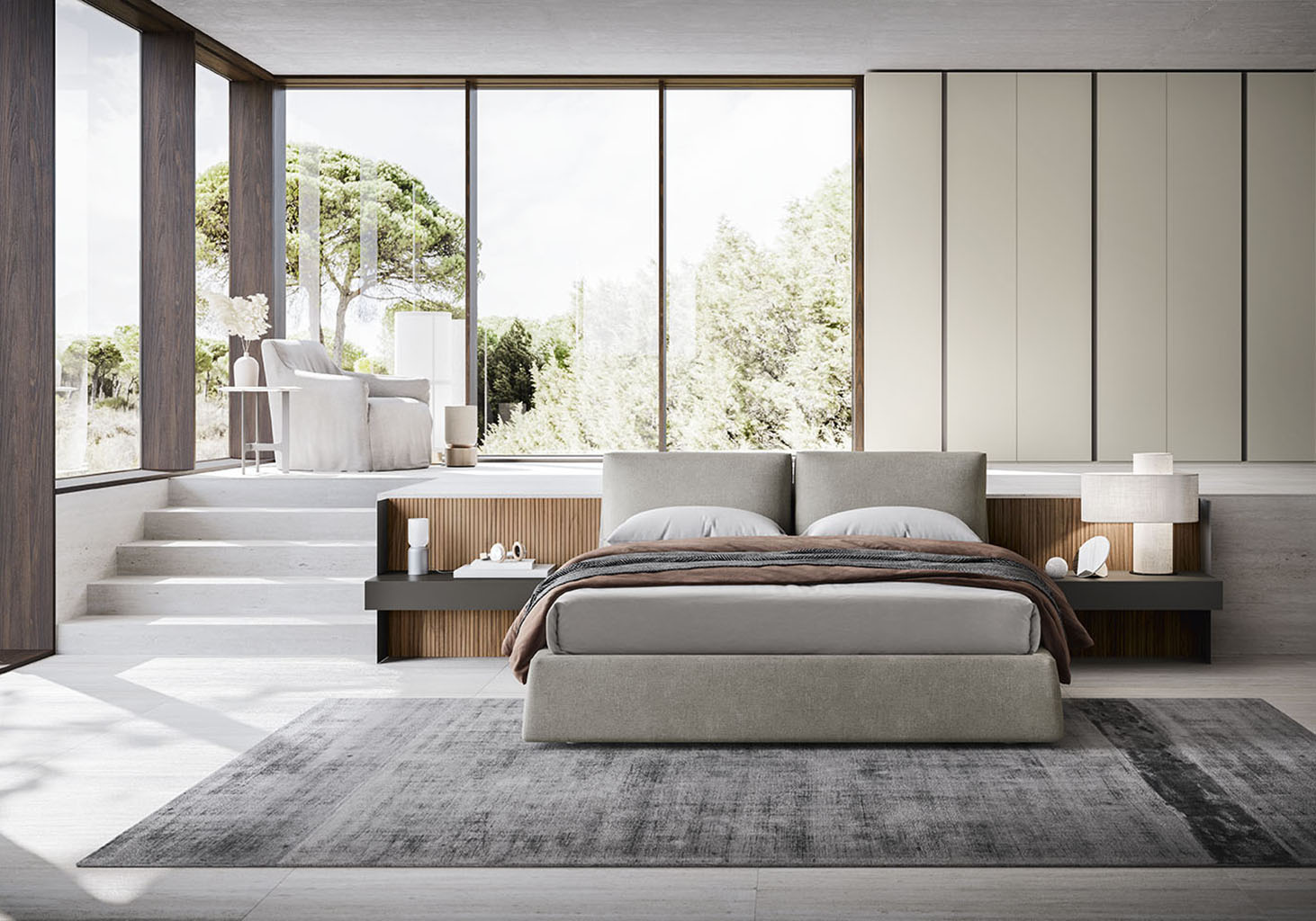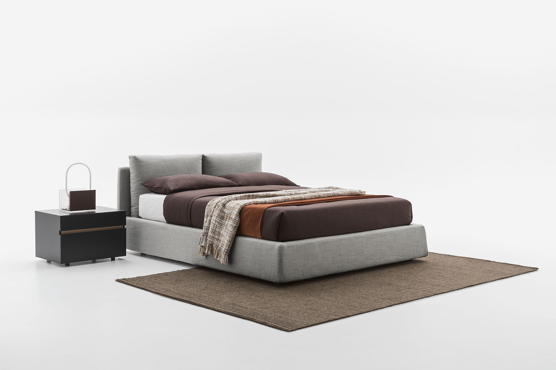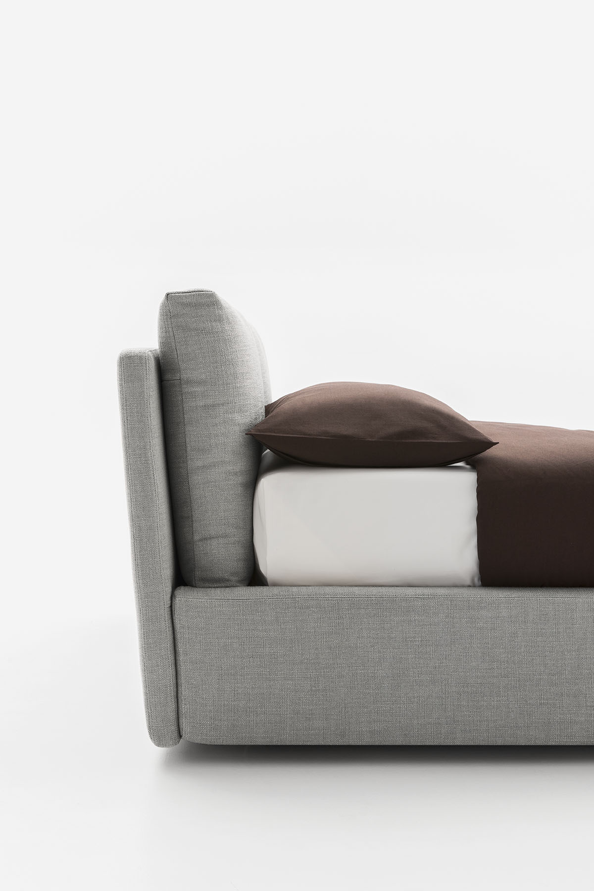 Featuring unusual, raw-cut stitching in the leather version which defines its edges, the Milano upholstered bed is both elegant and original. The soft cushions of the headboard rest on each other, creating a pleasing play of levels. This modern upholstered bed comes in a wide range of sizes, including with storage.
