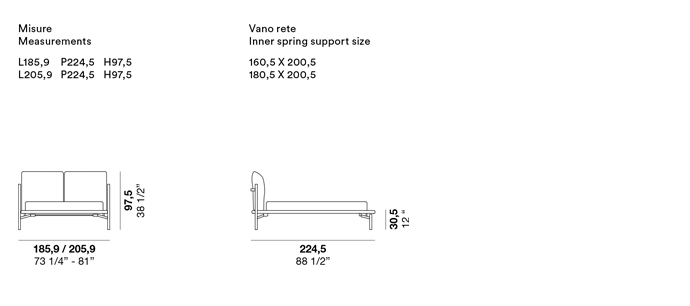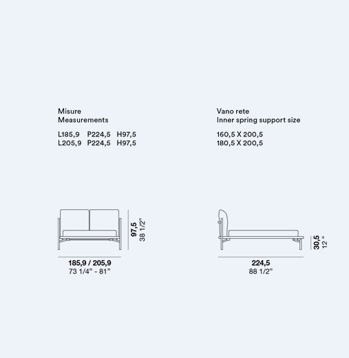 The Atlas upholstered bed has a wood and metal frame. The unusual shape of the feet and angled attachment to the bed platform create an intriguing floating effect, confirmed by the slim frame.
