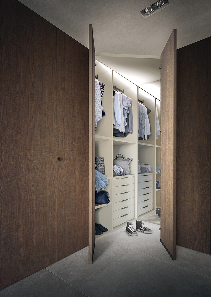 As the name implies, Simple is a designer wardrobe with swinging door characterised by the simplicity and linearity of its shapes.