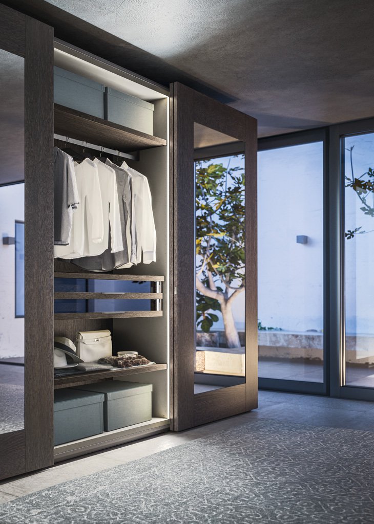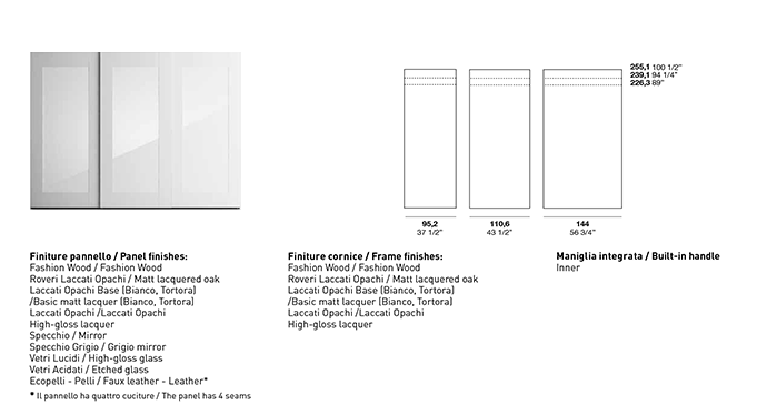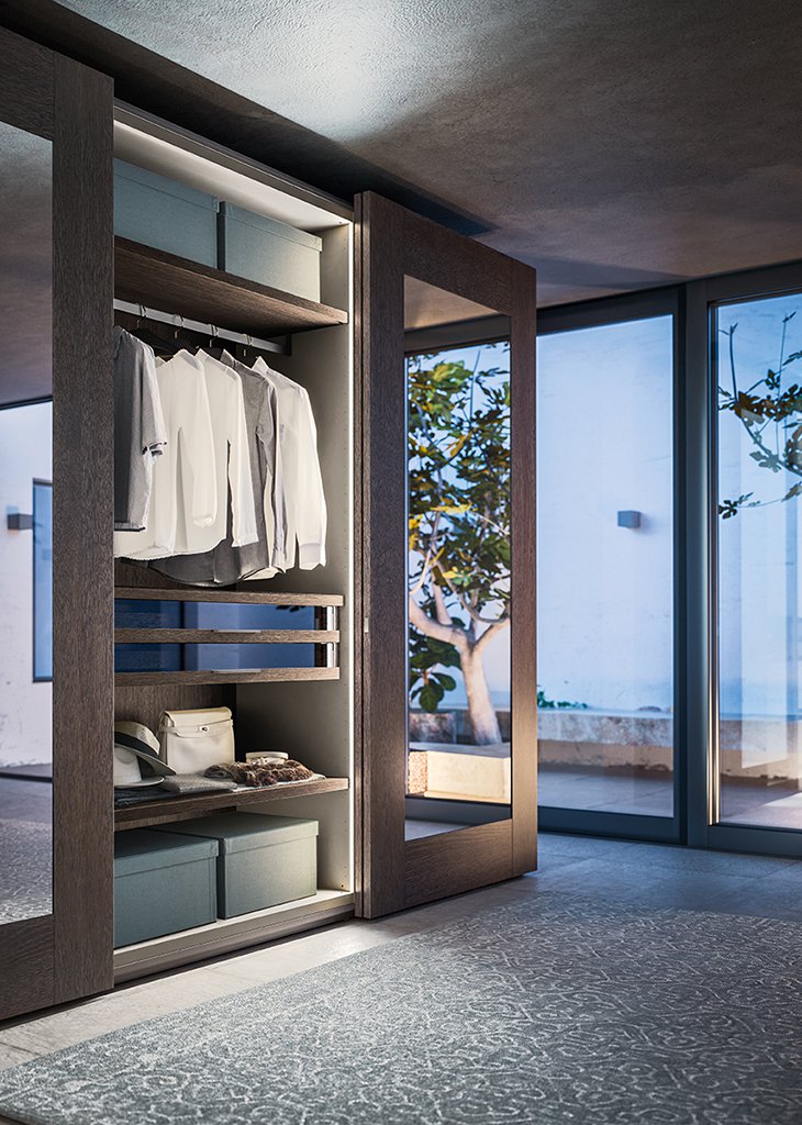 The design of the Quadra wardrobe with sliding doors is distinguished by the very thick border that surrounds the central panel in a contrasting finish.