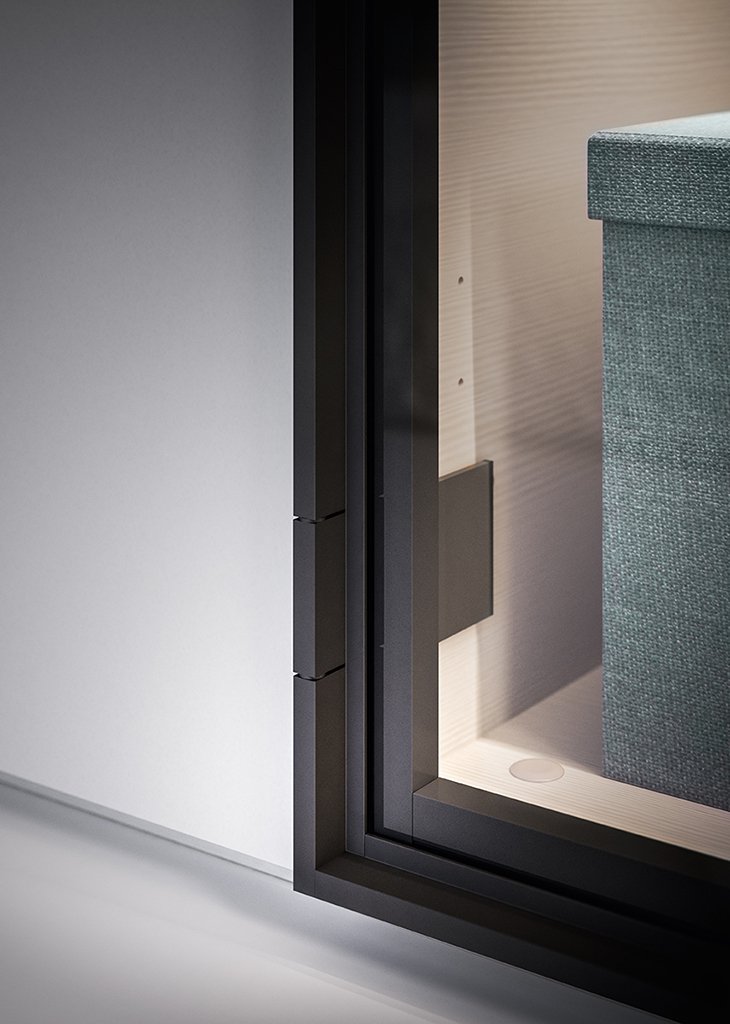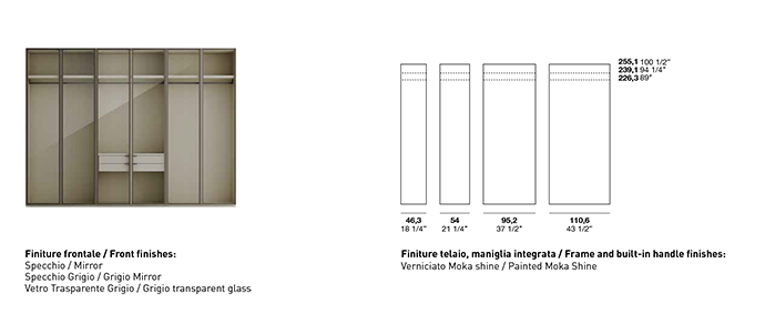 Display is a modern wardrobe with a glass door with a metal frame around the edge. It is available in clear glass, mirror or grey mirror.