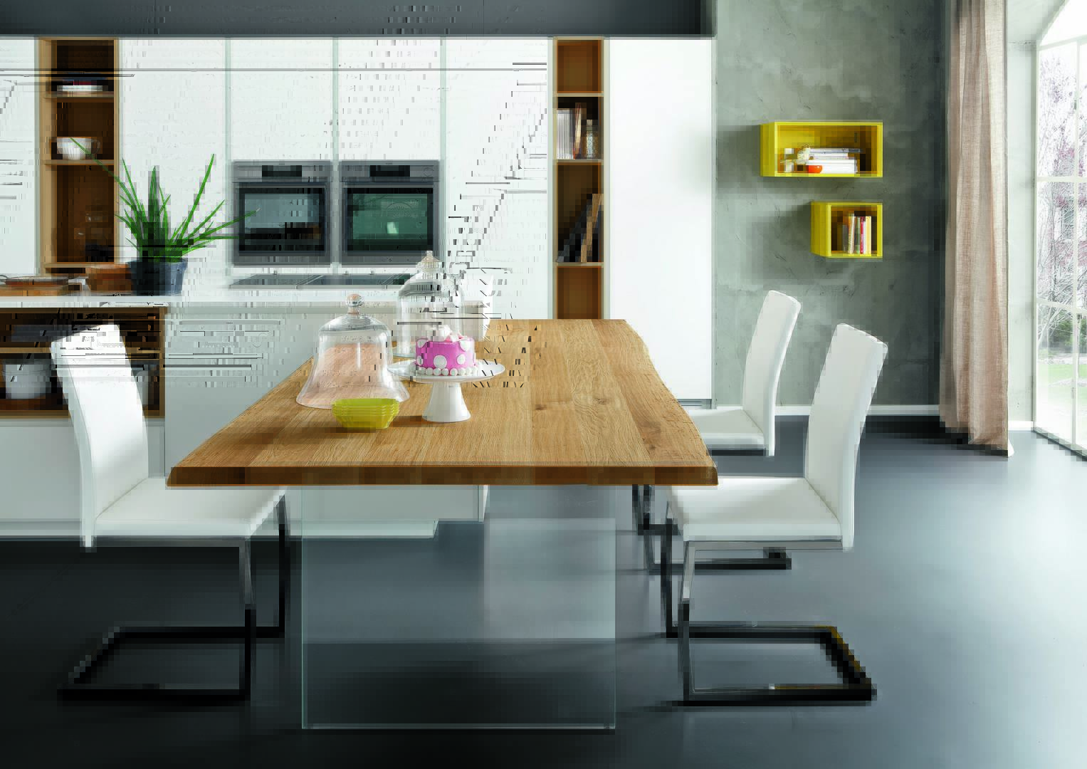 A 45 mm thick top in solid oak with uneven edges.