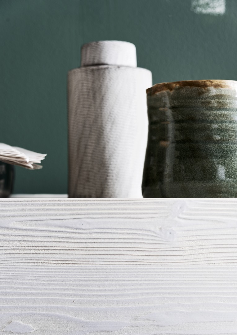 Easy sideboard with four hinged doors in Bianco spruce finish.