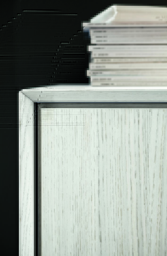 Nook sideboard with two hinged doors in oak, Alpine bio oil finish. It combines a Barcellona Table and Tess chairs, with the same finish.