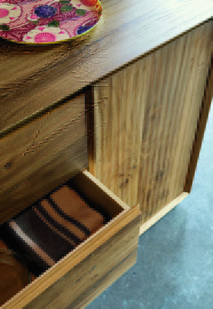In this section of the sideboard with 655mm high, we can see the walnut sideboard, with Industry finish open compartment and the Rovere Vecchio sideboard with Azzurro Vintage open compartment.