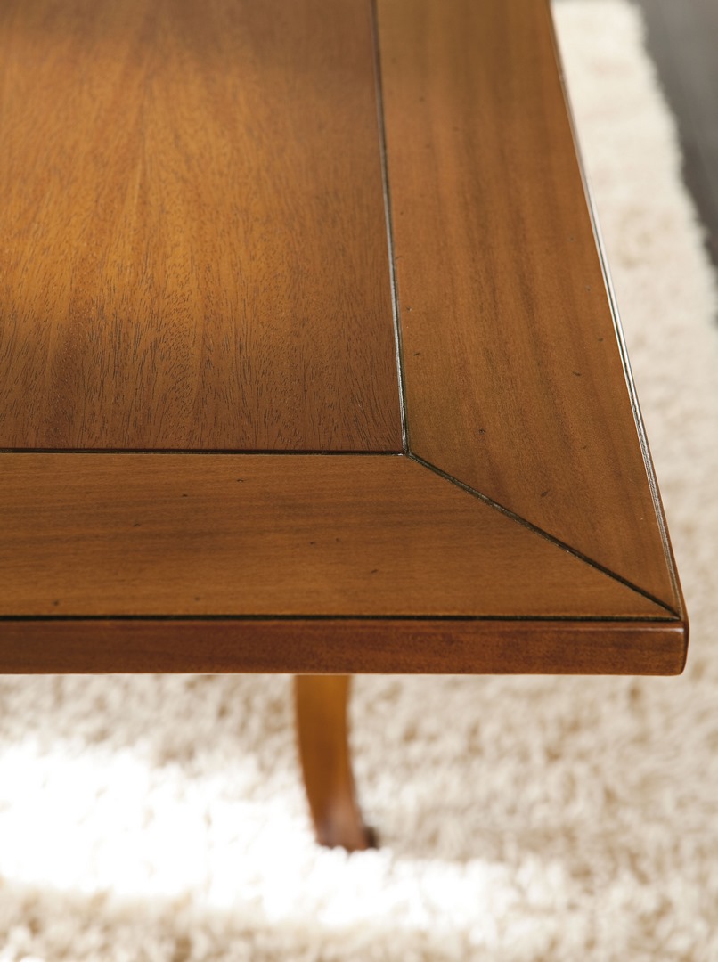 Square table with two 400 mm long, pull-out extension leaves.