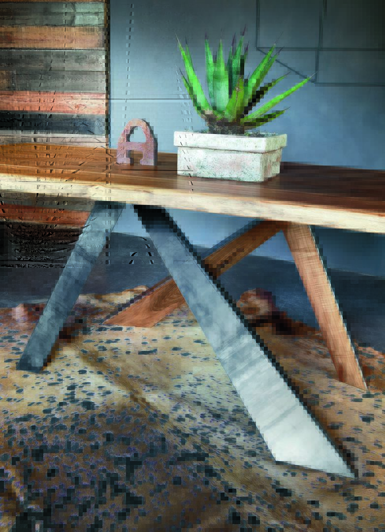 Toronto table with top in solid walnut and Industry iron finish metal legs.