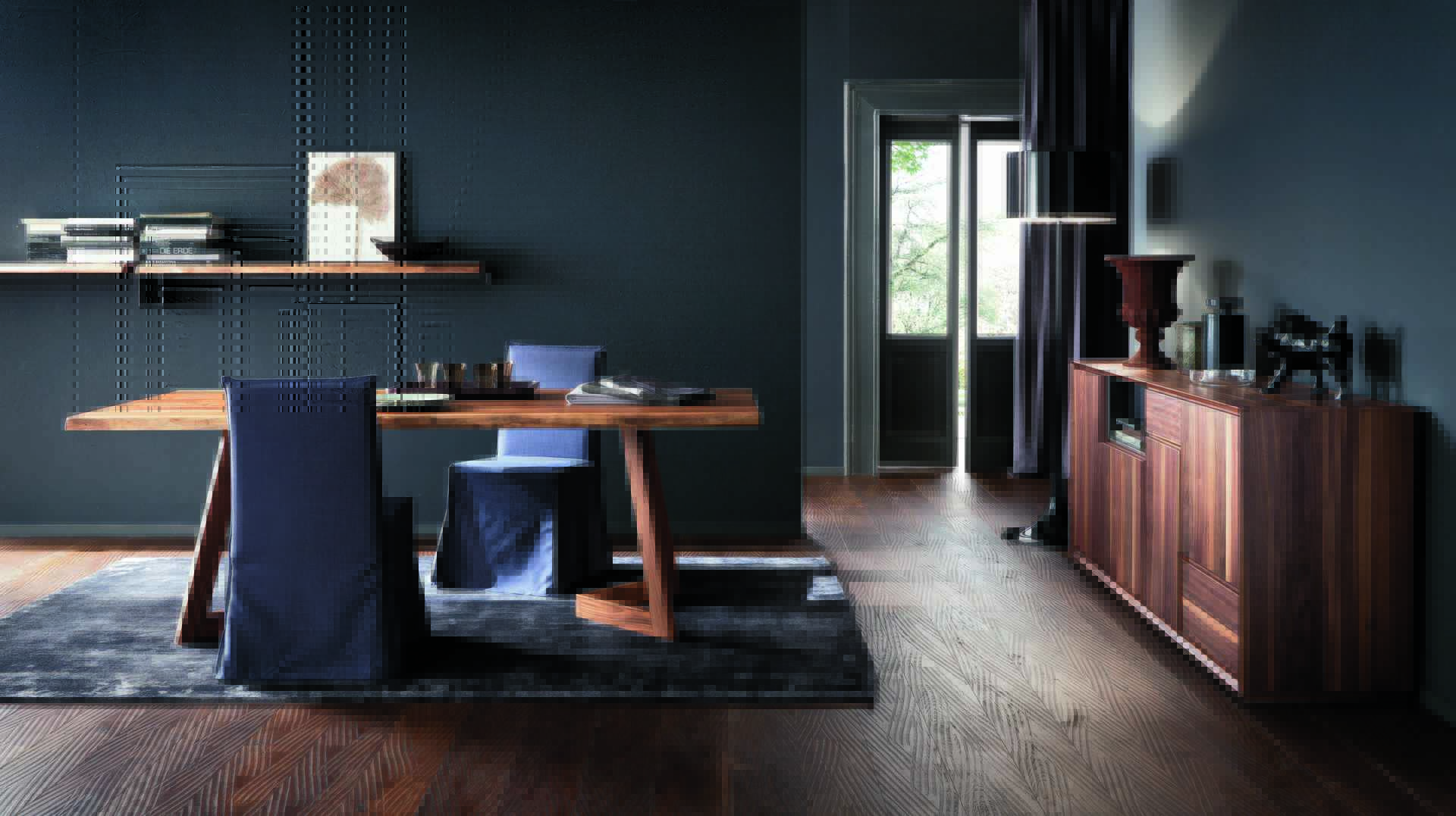 Toronto table in solid Walnut wooden top with “Seven” legs.
