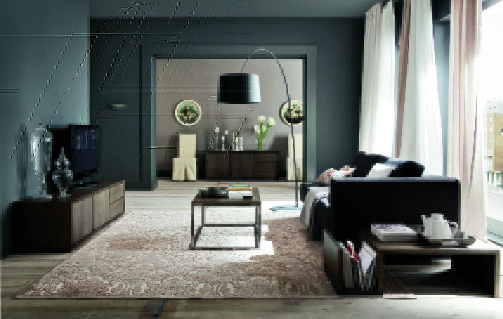 Nook TV cabinet with 2 hinged doors and 2 drawers, standing on brackets in Canapa sabbiato oak finish.