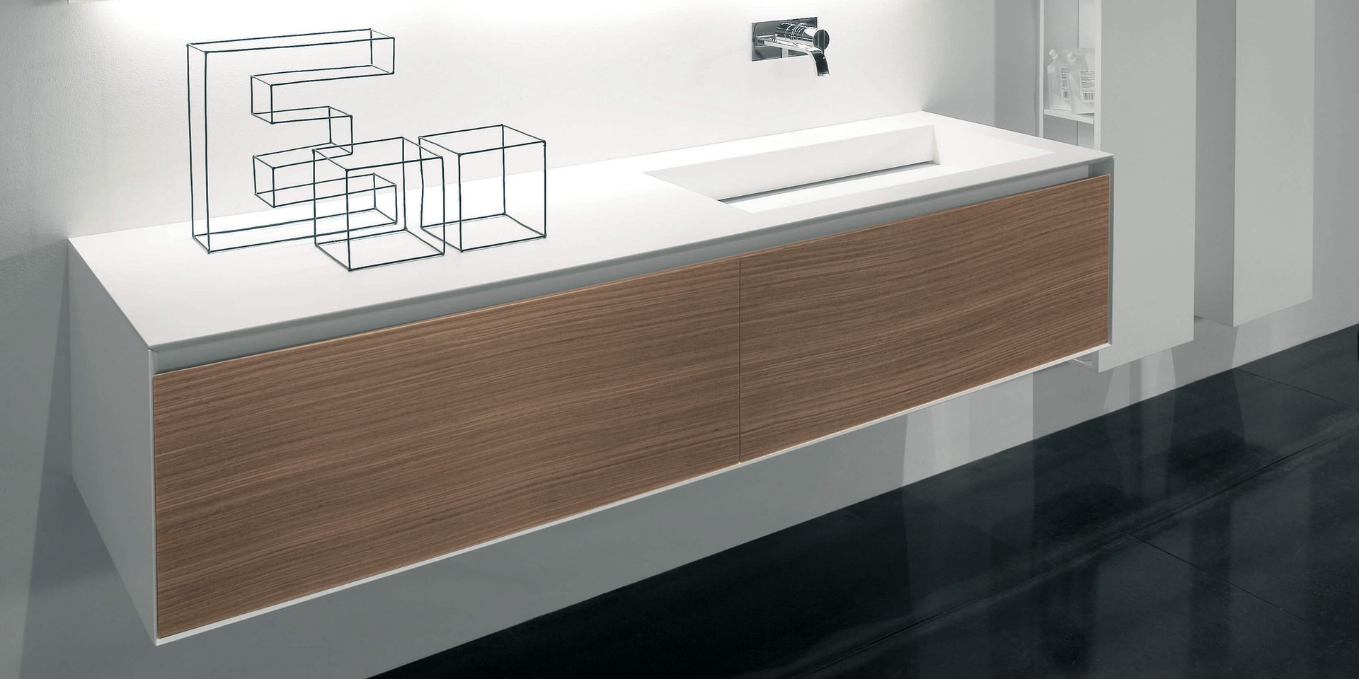 Top with integrated sink completely in Corian 12 mm thick, with drain prepared for siphon.