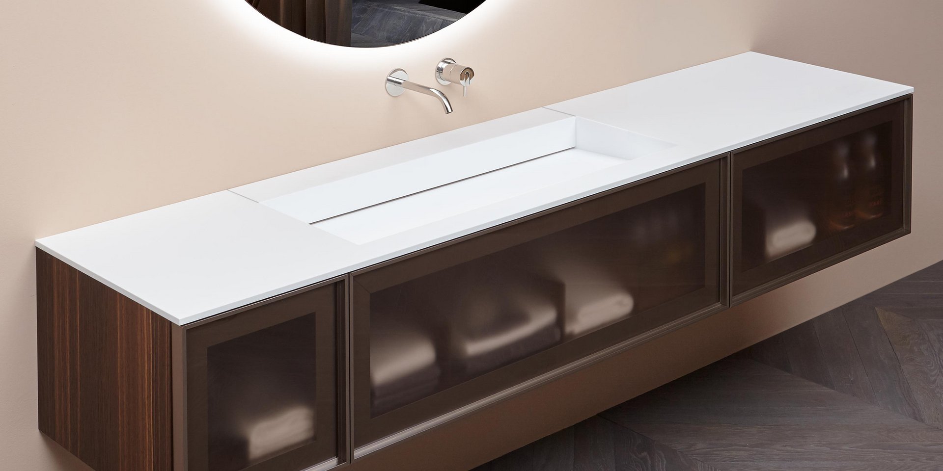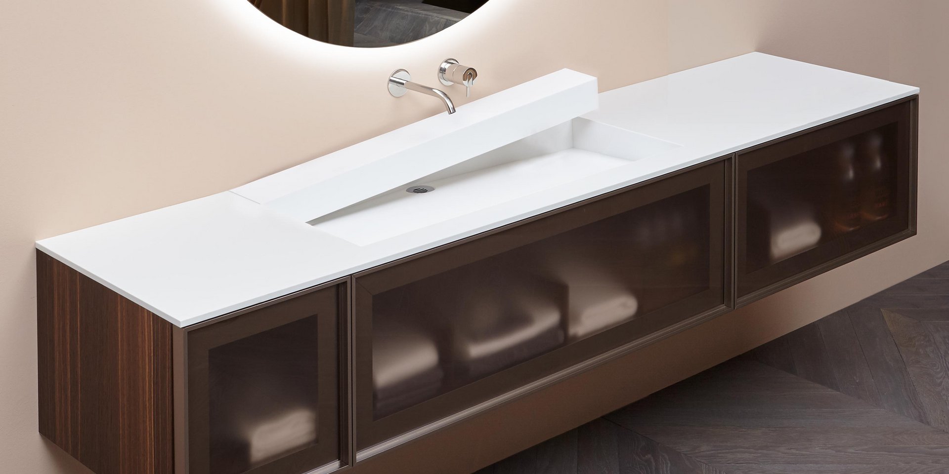 Top with integrated sink completely in Corian 12 mm thick, with drain pipe fitting and open plug.