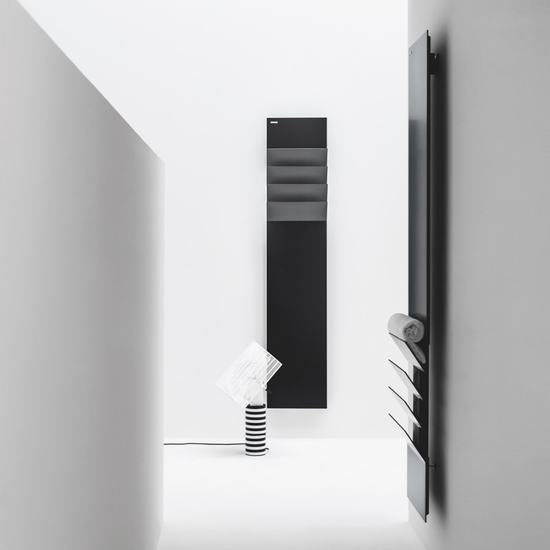 Flaps is the new slimline vertical radiator by Antrax designed by Victor Vasilev. The idea behind this project came from observing the shapes and functioning of plate radiators. The 'clean-cut' shape of the slimline radiator disappears when the accessory required to hook on a bathrobe or towel is added to it.