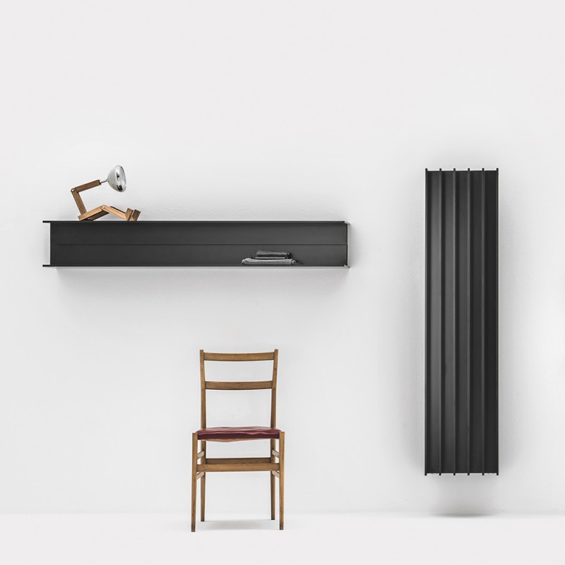 More than just an aluminium designer radiator; a piece of furniture that integrates into spaces with great personality but doesn't want to be the centre of attention. In terms of its main characteristics, this aluminium designer radiator is basic, light and eclectic. With only an aluminium profile you can create "warm" configurations: individual and combined shelves, object holders, towel rails etc for the bathroom, entrance, hall, kitchen and living room.