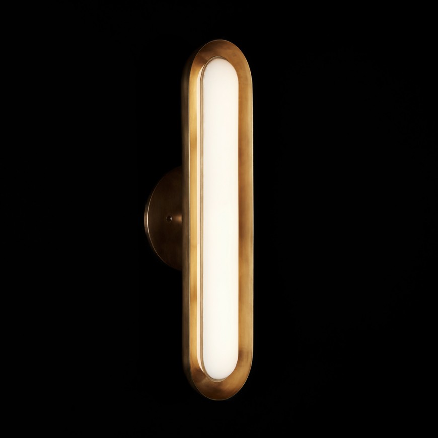 THE CIRCUIT SERIES CREATES RHYTHM WITH THE REPETITION OF PURE SHAPES. A GLOWING GLASS CAPSULE NESTS IN A BRASS SHADE, BECOMING A CONTAINED FORM THAT MULTIPLIES TO CONSTRUCT LARGER FIXTURES.
