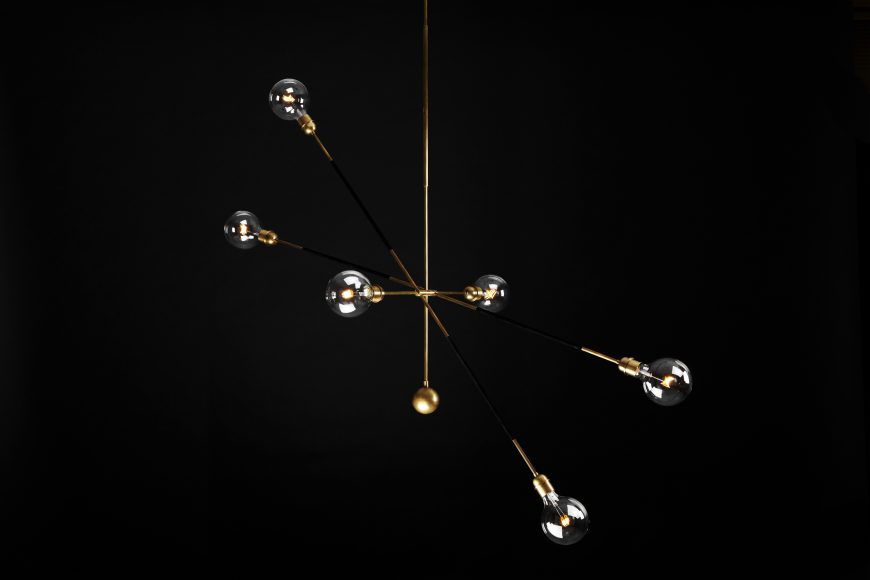 INSPIRED BY THE SILHOUETTE OF FAMED FRENCH AERIALIST PHILIPPE PETIT ON HIS WIRE. THE “BALANCE BAR” IS WRAPPED IN LEATHER OR SUEDE AND CAN BE TILTED ALONG ITS AXIS.