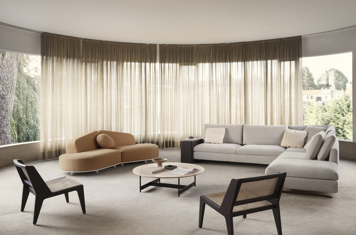 The Delta Vienna lounge chair is distinguished by the triangular, almost wing-like legs and the backrest sides. This distinctive silhouette, made from solid wood, contrasts with the seat and the backrest in “Paglia di Vienna” rattan.