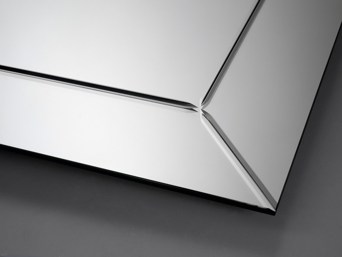 Specchio filo lucido con cornice ad incisioni con e senza illuminazione perimetrale a led diffusion, trasformatore 220/12V ed interruttore touch-light, completo di telaio.