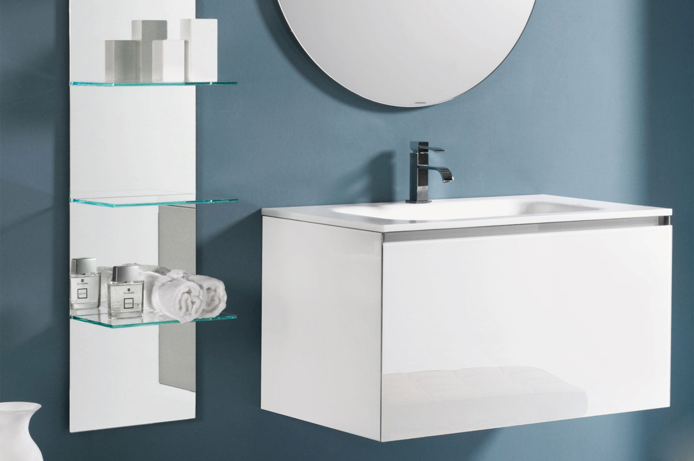 La particolarità di Domino è quella di offrire una vasta scelta compositiva, pur essendo elementi monoblocco in Cristallo. Domino e Domino44 si differenziano per la diversa profondità (permettendo di adattarsi alle più svariate esigenze spaziali) e per le caratteristiche delle aperture: dal cassettone ai due cassetti ?no al cassetto singolo.
