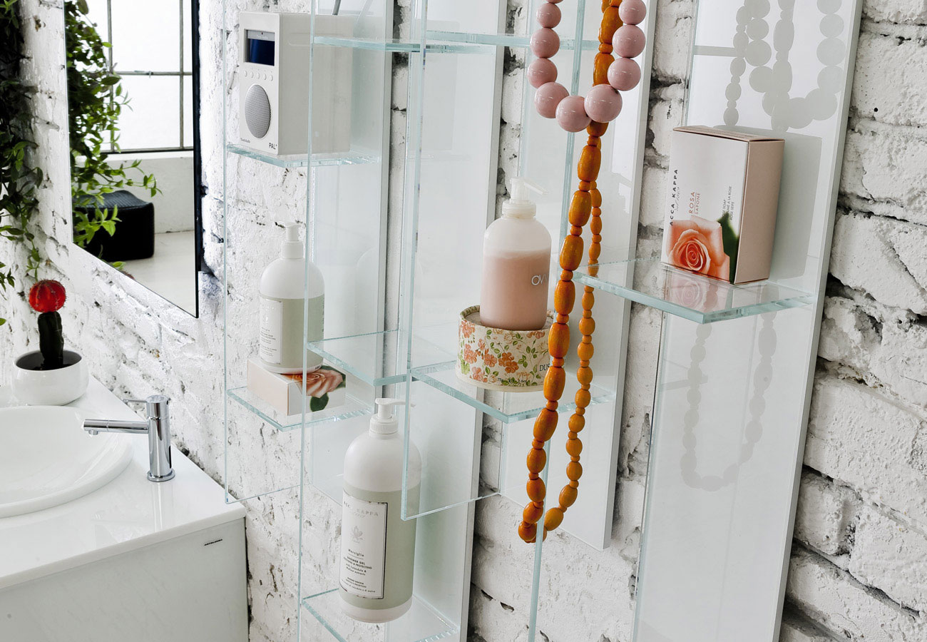 Per questa collezione è stato pensato un lavabo integrato dalla fusione particolare che permette di sfruttare al meglio tutta la profondità del mobile e di poter usufruire di miscelatori sia da appoggio che a muro.