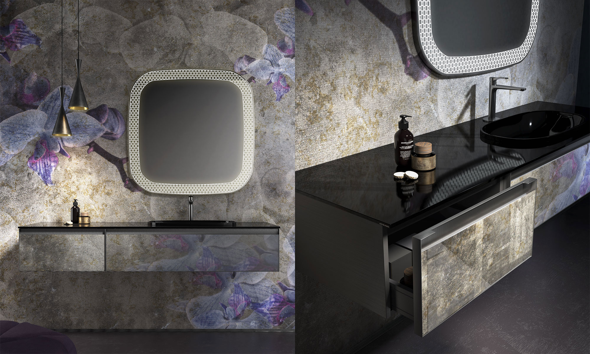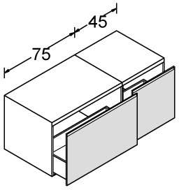 Programma di mobili contenitori versatili e funzionali caratterizzati dalla possibilità di essere interpretati tramite l’utilizzo di svariate finiture, quali ad esempio, vetri, specchi, grés decorativi e grafiche.