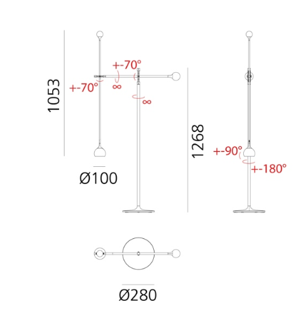 Ixa is a complete and transversal family composed trough the combination of an adjustable spherical head, rods and counterweights. It is a smart and scalable principle that allows the Ixa family to expand with the addition of new versions. A larger head is combined with two new structures, wall and ceiling, recalibrated to balance the weight and bring light into the space to respond to different lighting needs.