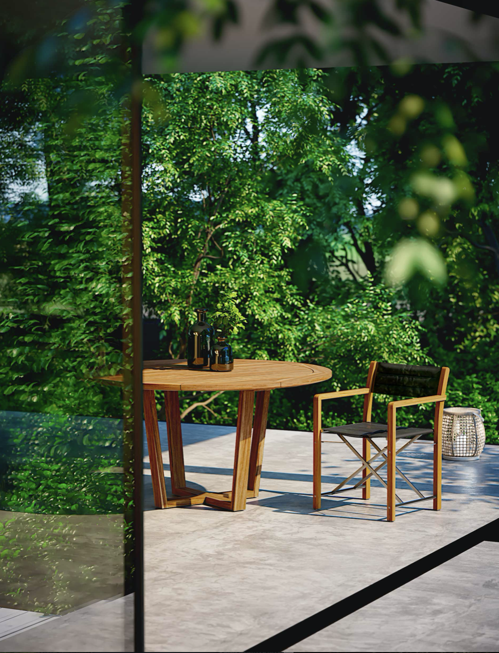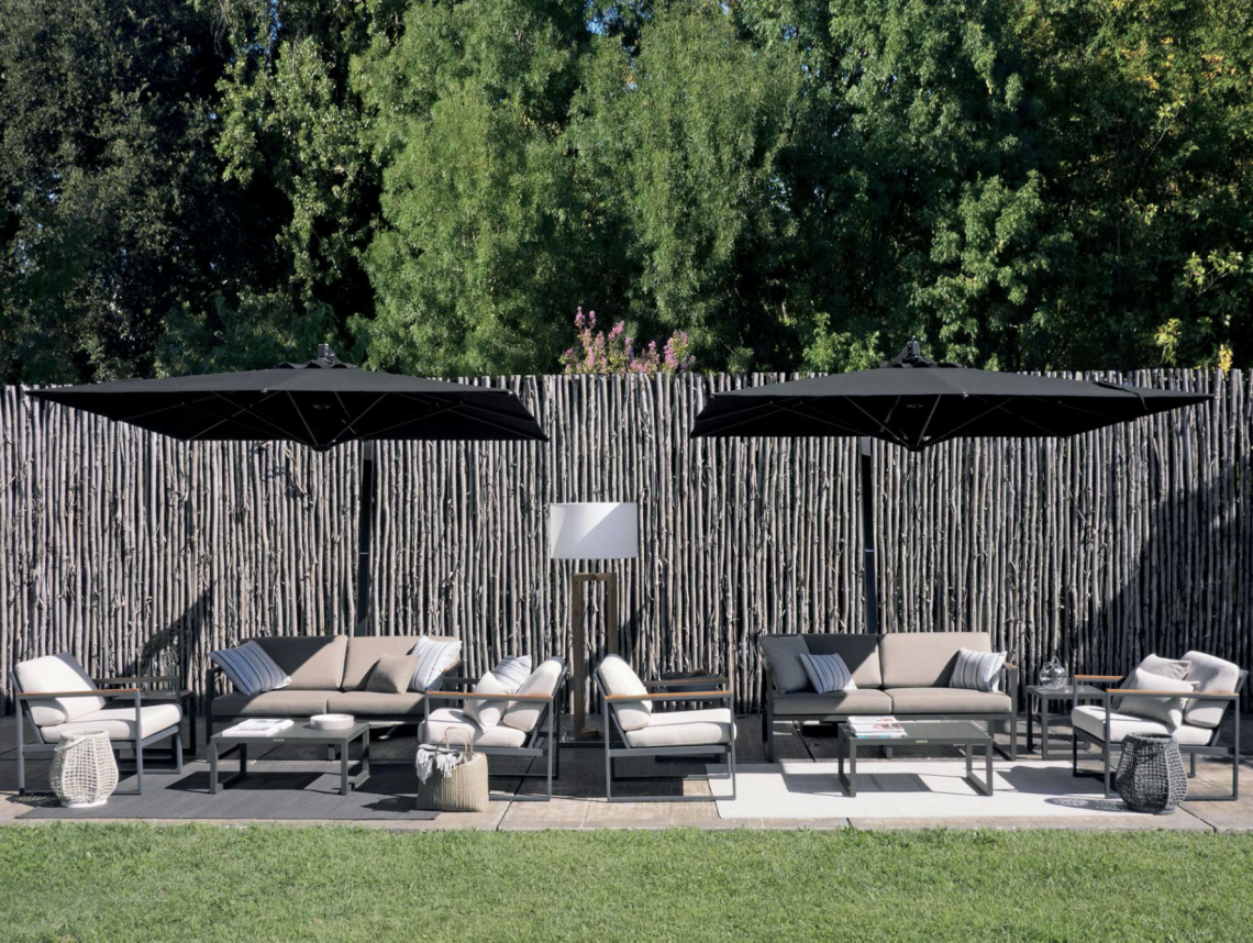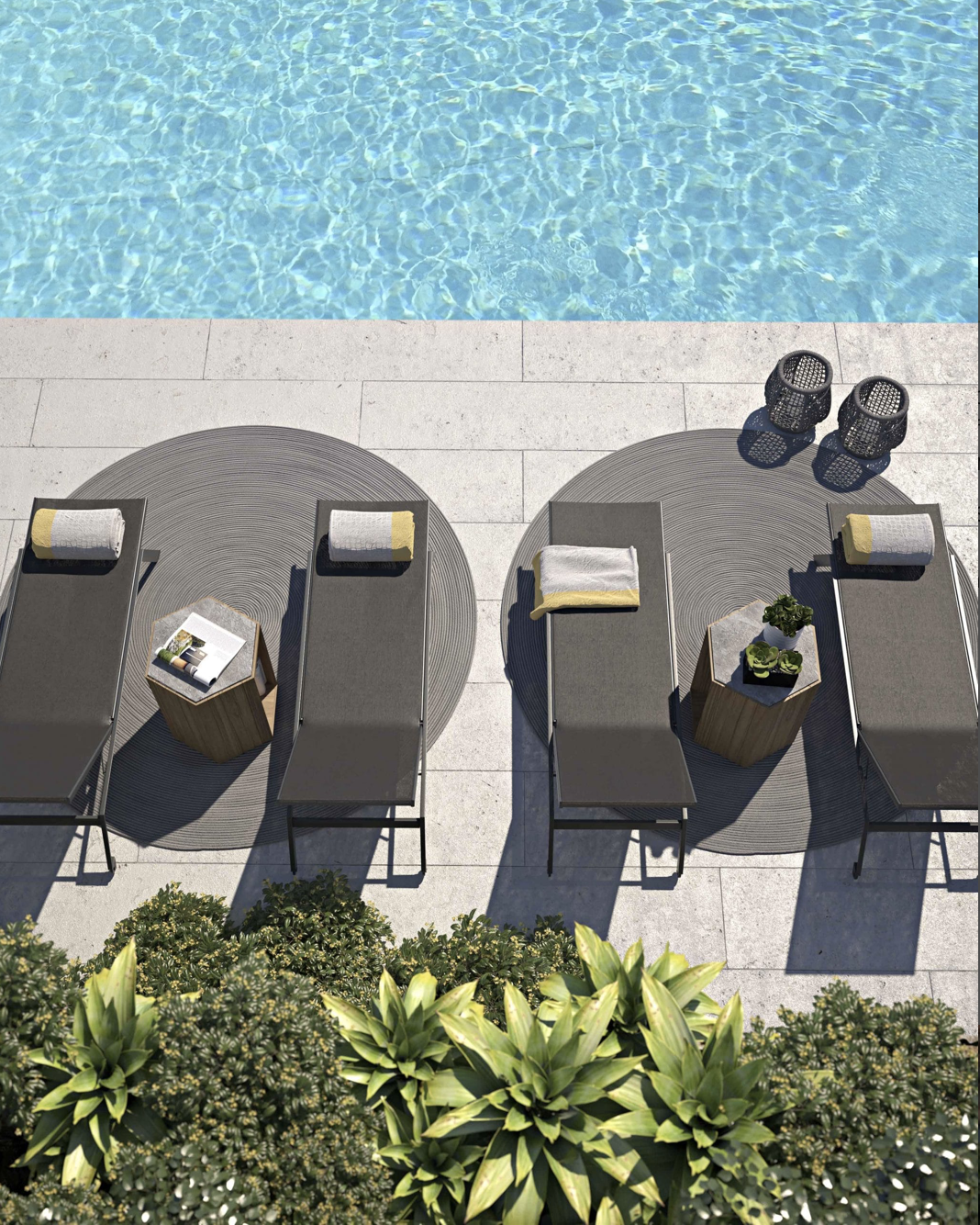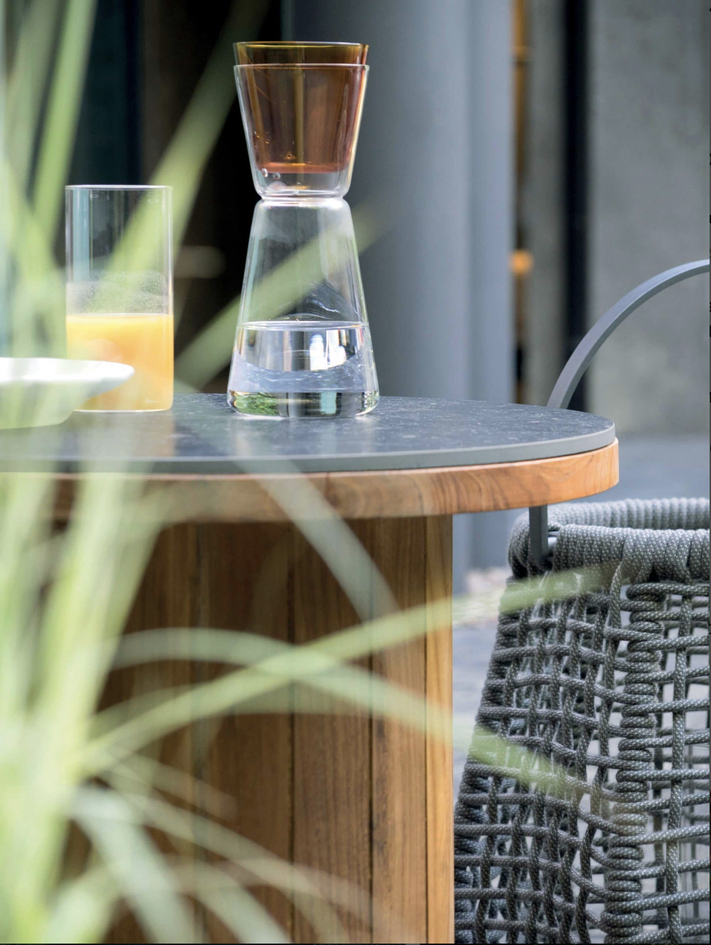 Grazie alle forme organiche, la luce viene filtrata attraverso corde tramate fissate ad una struttura in alluminio. Adatta a rimanere all’esterno tutto l’anno.