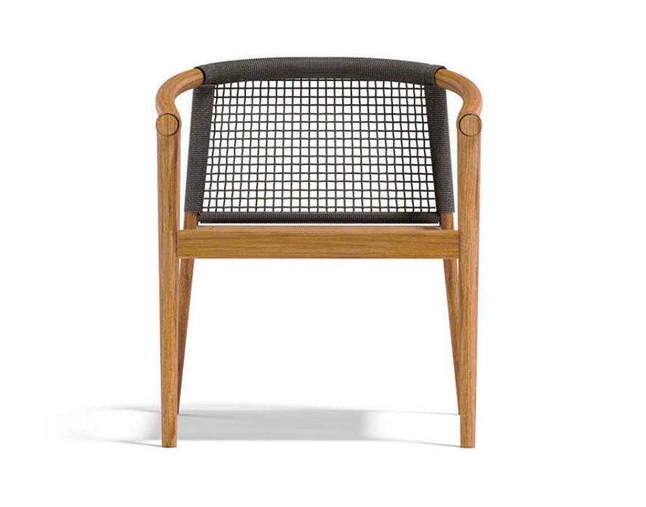 Design pulito e minimale descritto in una struttura completamente in teak intrecciata da una corda rotonda che crea una maglia morbida e di forte tenuta. Un nido accogliente diventa spazio di conversazione e lettura.