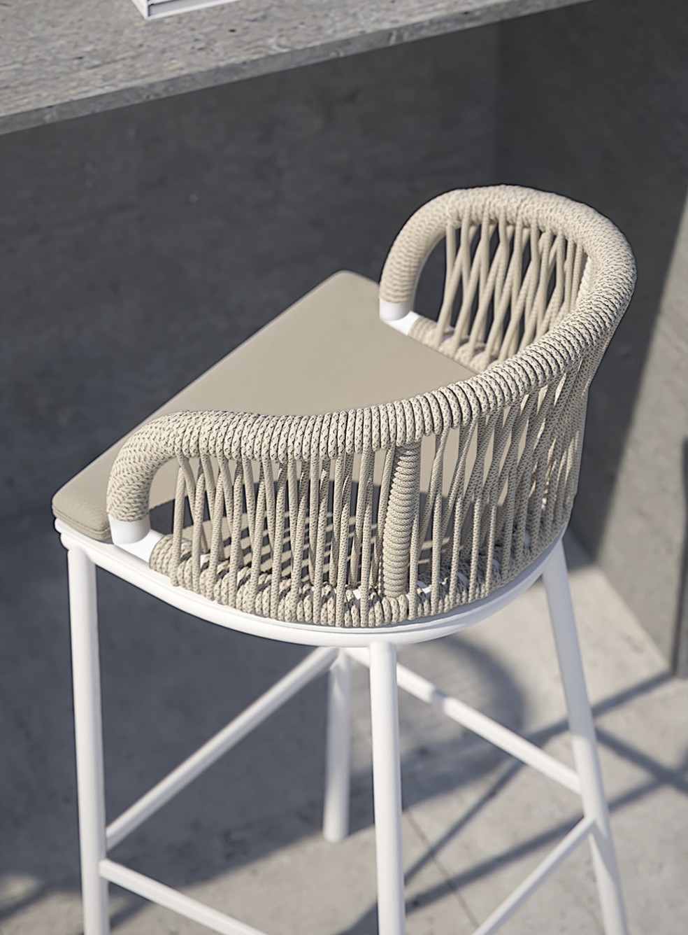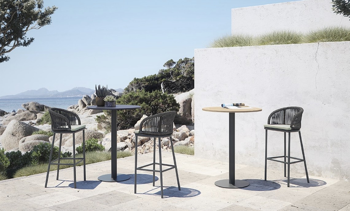Design pulito e minimale descritto in una struttura completamente in teak intrecciata da una corda rotonda che crea una maglia morbida e di forte tenuta. Un nido accogliente diventa spazio di conversazione e lettura.
