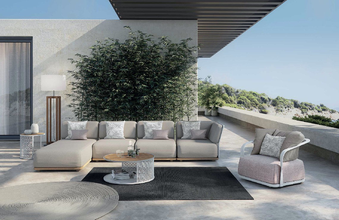 Strutture in alluminio verniciato epossidico per esterni in colore bianco o grafite, dettagli nella nuova finitura alluminio tinto Teak.