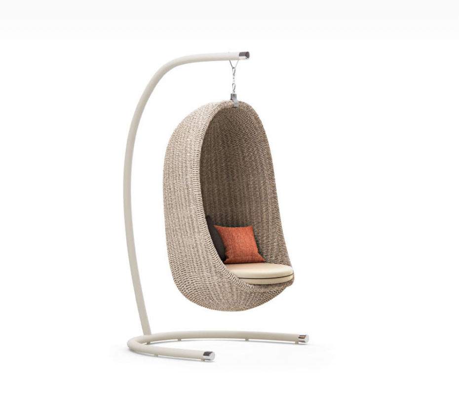 Strutture in alluminio verniciato epossidico per esterni. Intreccio in estruso di polietilene solidificato ad acqua, intrecciato a mano.