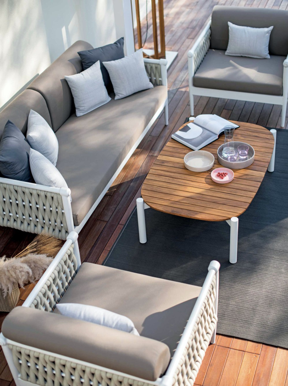 Come in una cravatta il nodo diventa dettaglio di eleganza ed elemento di distinzione, Dandy interpreta il concept attraverso una struttura in alluminio intrecciata da morbide corde.
