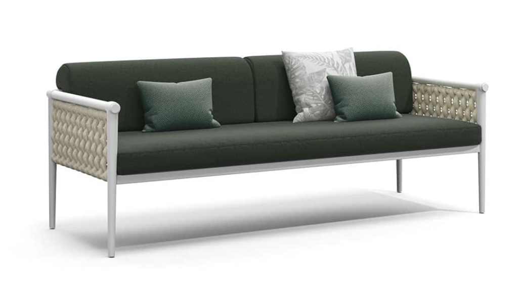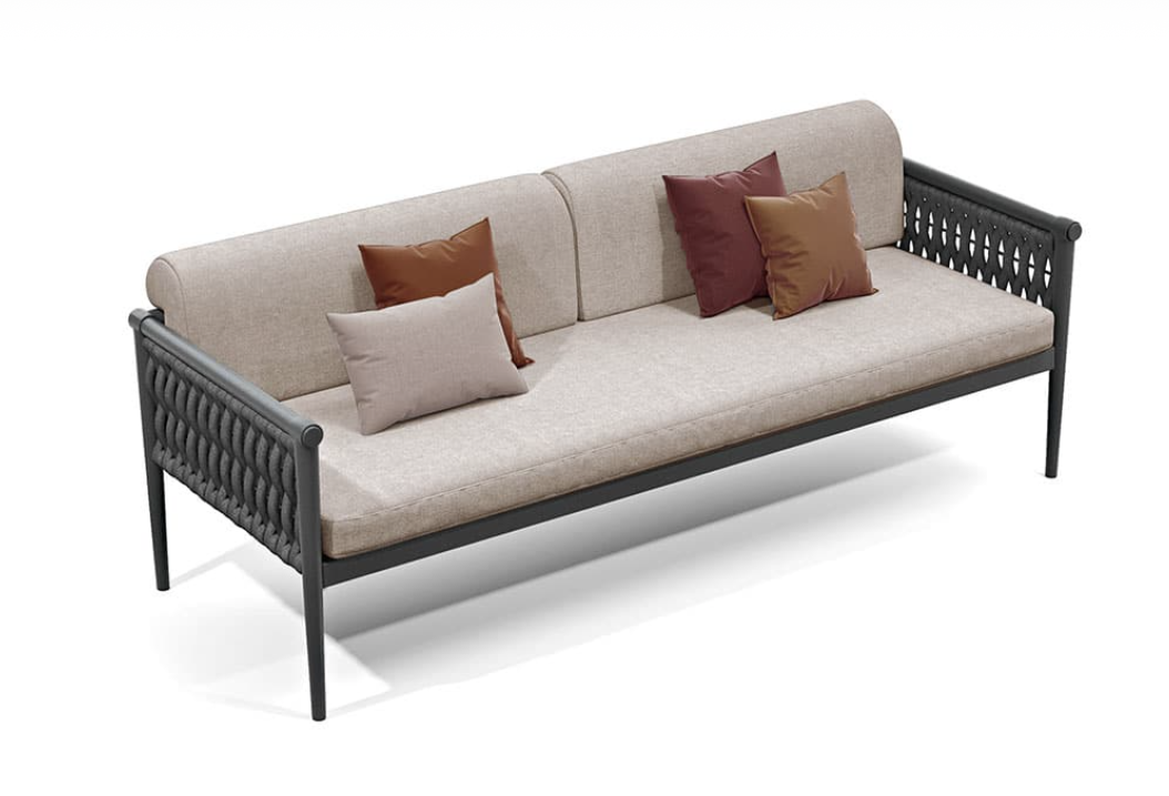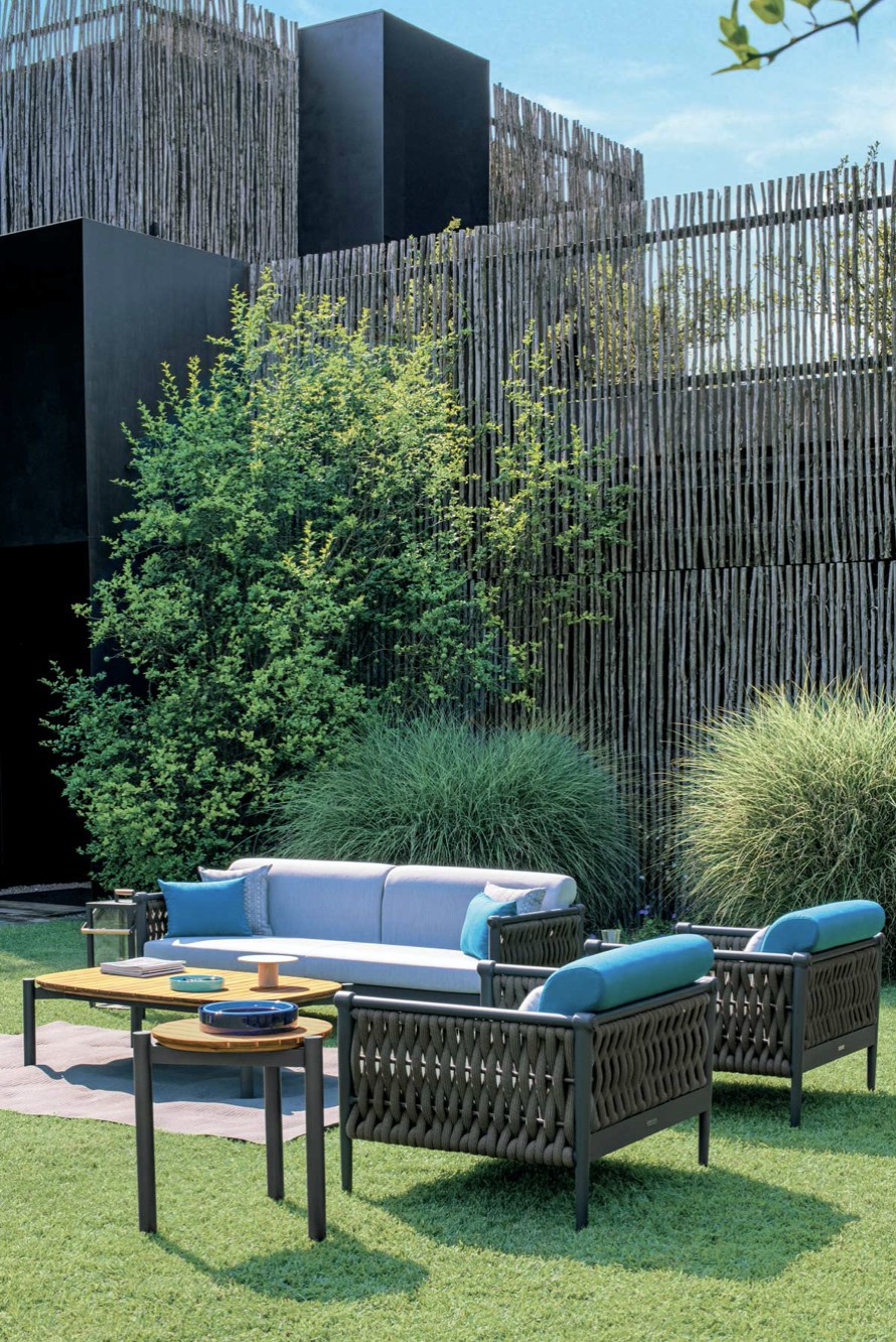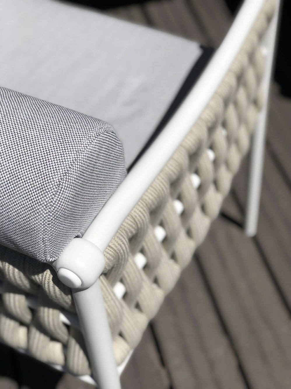 Come in una cravatta il nodo diventa dettaglio di eleganza ed elemento di distinzione, Dandy interpreta il concept attraverso una struttura in alluminio intrecciata da morbide corde.