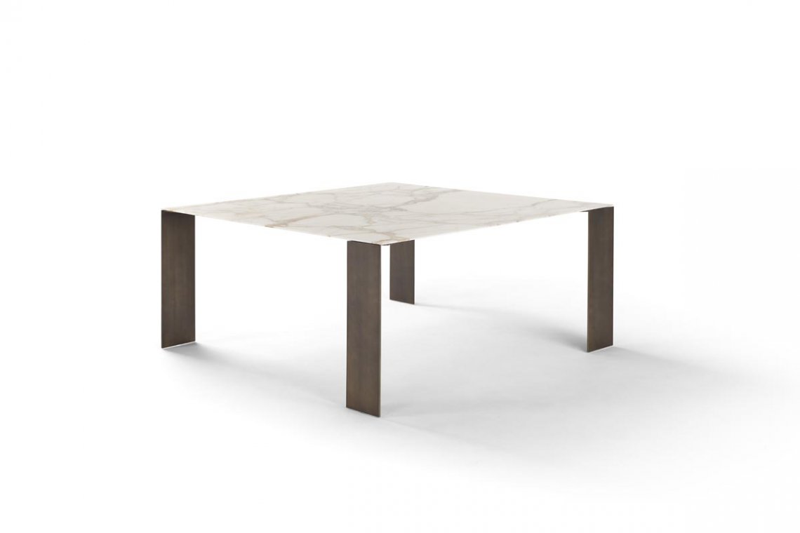 Fragilità e forza, leggerezza e solidità: sono questi i confini entro cui si muovono i tavoli Exilis, con le loro linee essenziali, gli spessori minimi delle lastre che forzano fino all’estremo le potenzialità dei materiali, e al contempo la stabilità assoluta data da esatti rapporti di forza tra basi e top. Contrastano tra loro anche la semplicità formale delle linee che si intersecano creando piani d’appoggio minimali, e l’importanza dei materiali scelti: lamiera metallica per la base e marmo o legno per il top. Exilis è una collezione di tavoli dalla forte personalità che si inserisce in ogni tipologia di living grazie alla capacità di assumere di volta in volta aspetti differenti a seconda delle finiture scelte.