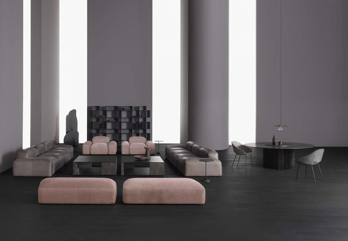 Un’antica strada romana, lastricata di pietre levigate dal tempo, affiora in un bosco o da un campo di grano e prende corpo: le geometrie assumono forme tridimensionali e in un originale gioco di volumi danno vita allo schienale del letto Lapis. Nella versione asimmetrica, lascia spazio alla possibilità di affiancarci un comodino, da Amura proposto con la collezione Lapis coffee table.