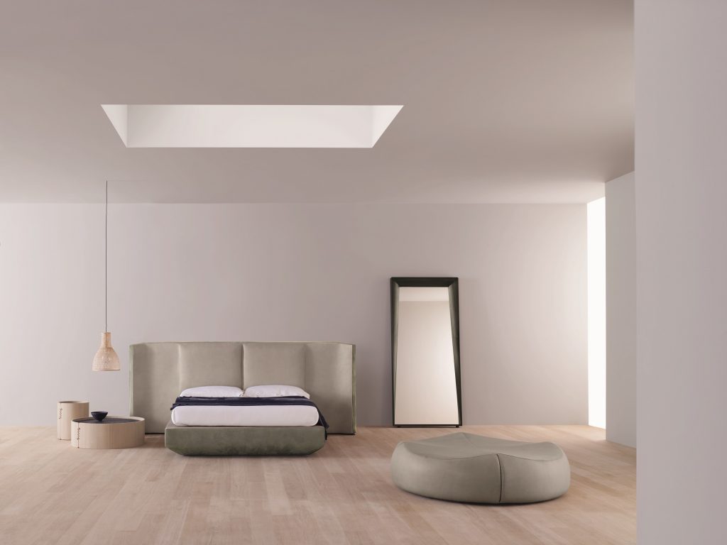 Un’antica strada romana, lastricata di pietre levigate dal tempo, affiora in un bosco o da un campo di grano e prende corpo: le geometrie assumono forme tridimensionali e in un originale gioco di volumi danno vita allo schienale del letto Lapis. Nella versione asimmetrica, lascia spazio alla possibilità di affiancarci un comodino, da Amura proposto con la collezione Lapis coffee table.