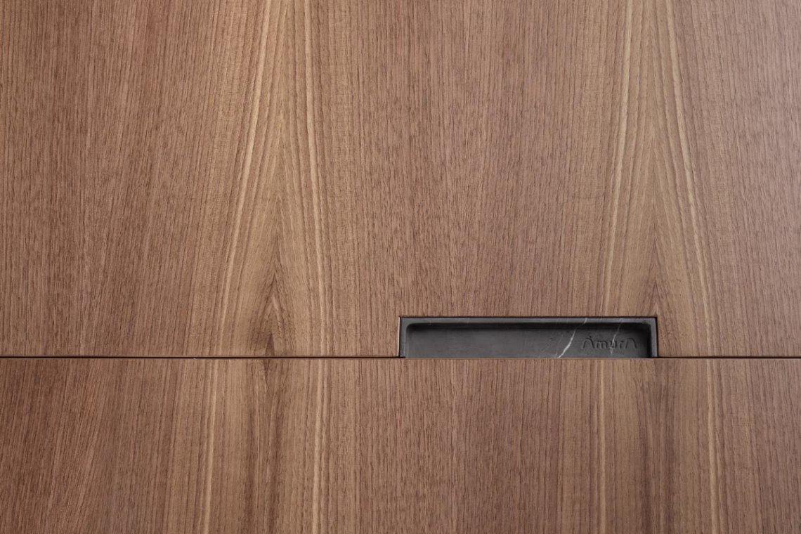 Progettato con grande attenzione ai dettagli per consentire una facile movimentazione, da qui il nome “slide”, a richiamare il tipo di mobilità delle ante, simile proprio allo scorrere delle slide. Tecnicamente ineccepibile ed esteticamente equilibrato, grazie al rigore formale e alla combinazione dei materiali, che vedono il legno come protagonista nella struttura e il marmo nel dettaglio della maniglia.
