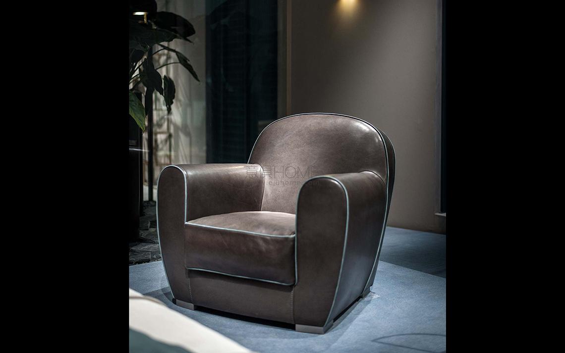 The Amburgo Baby armchair, designed by Paola Navone for Baxter, features a rounded, reassuring design that recalls the classic ideal of the home armchair. The curved shape of the accessory forms an extra-comfortable upholstered seat with wide armrests and an enveloping backrest that seems to want to embrace the sitter, encircling them in a comfortable and secure embrace. Featuring a compact, neat size, this rounded armchair is enhanced by the original decorative profile in contrasting or tone-on-tone leather, which further enhances its curved, soft design.