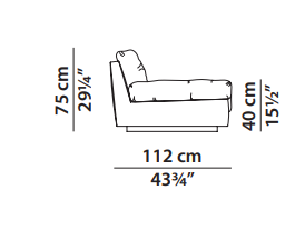 Structure in phenolic plywood and fir essence. Differentiated density polyurethane foam filling with acrylic fibre covering. Decoration with same colour leather and matching or white/red yearn. Sofa and asymmetric armchair with base in matte black-varnished tulipier wood. Armchair with revolving base in matte blackvarnished metal.