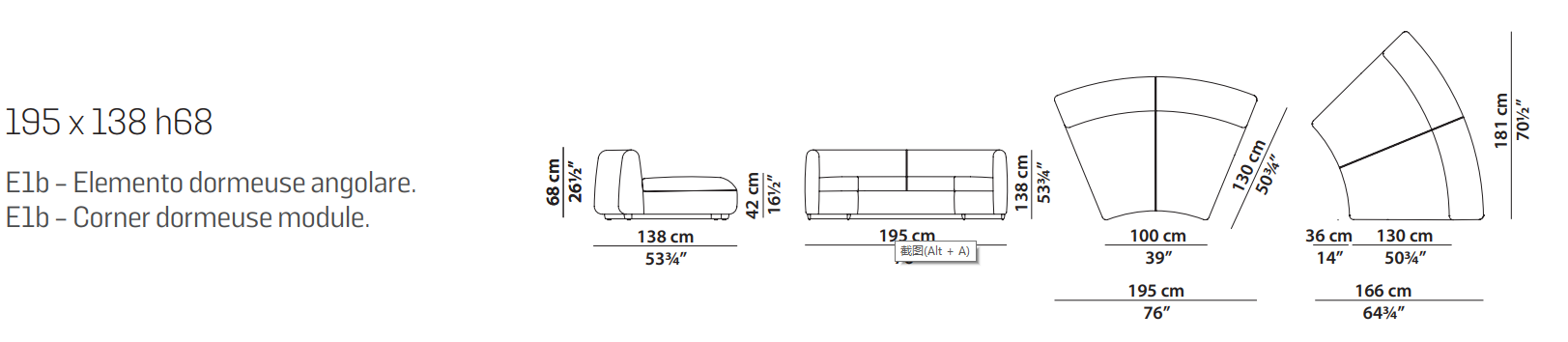 Chilean pine plywood frame. Seat and back cushions in differentiated density polyurethane foam filling with acrylic fibre cover. Springing with woven elastic straps of covered rubber. Base beneath body with leather upholstery.