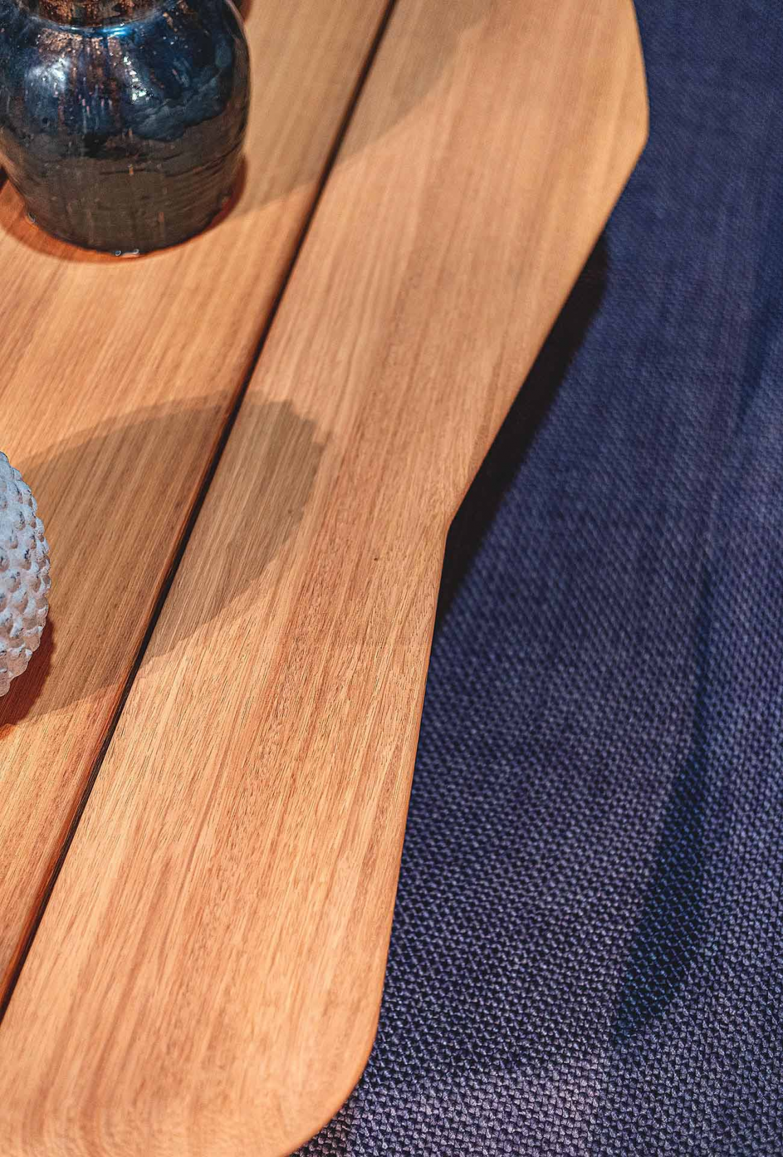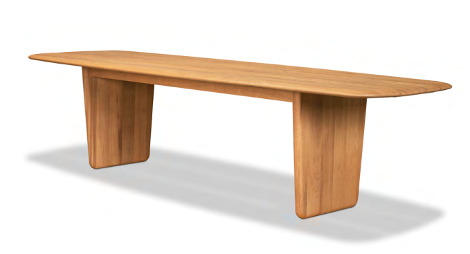 In the low silhouette smoking version and in the taller dining silhouette version, two compact, secure legs supporting a majestic table, we find the sinuosity of an informal character: an invitation not to choose a set side to sit on, the approach to adventure becomes outdoor-friendly.