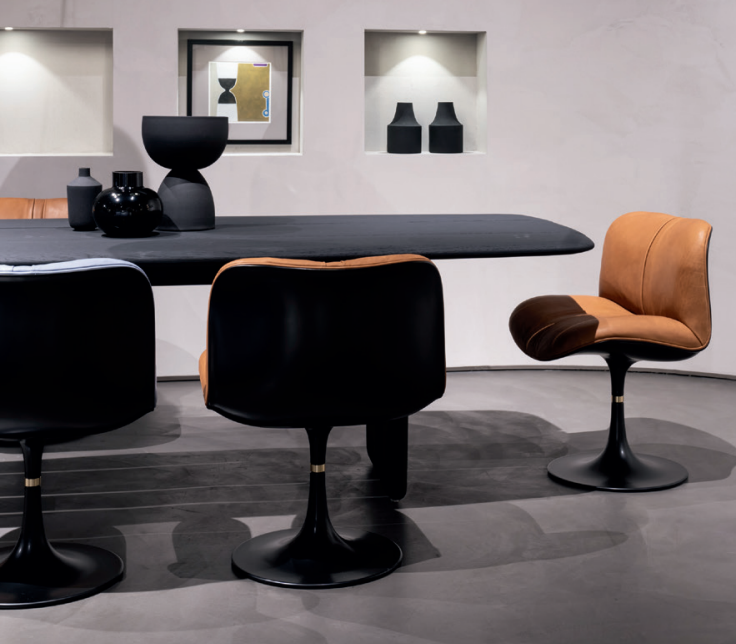Crossing the threshold into the dining or study area, however, those same characteristics interpreted in the version featuring sandblasted solid ash that has been stained black take on a more solid personality. It is the versatility with which Nairobi succeeds in giving substance to the idea of the world we have built up through travelling and living, the synthesis of the freest experiences and those regulated by the rules of coexistence; it indicates a more relaxed way of welcoming, a conversation without labels.