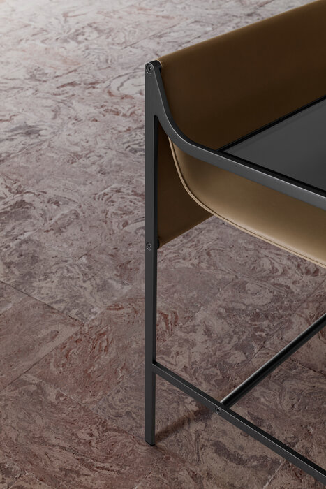 Quiet Lines, a transversal collection consisting of writing desk, bench, bedside table, and screen, is the result of research into serenity by Gabriel Tan and B&B Italia. The silhouette of each collection piece is made up of curved and straight lines, with a striking graphic mark. The curved surfaces upholstered in leather provide tactility and comfort and muffle the sound of objects as they are placed on the shelves. The writing desk, that can also be used as a vanity desk, is characterised by a glass top that allows a glimpse of the objects positioned on the leather shelf positioned underneath.