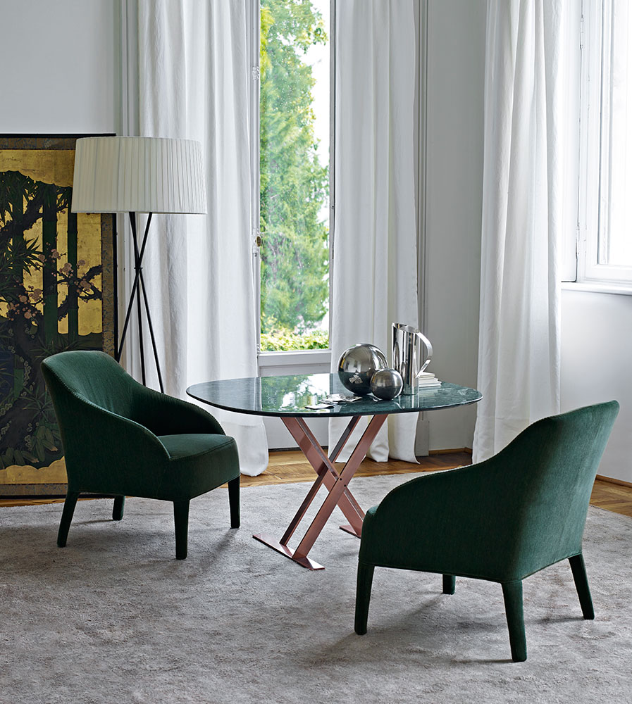 Febo是一個沙發和扶手椅系列,能夠讓人回想起傳統設計。大型環抱式靠背,無扶手的款式是其一大特點。這些沙發有兩種尺寸:帶有較低或較高靠包的小型沙發或大型沙發。這個系列還有典雅、可調節靠背高度以及靠背環抱程度的扶手椅。這些都是采用單一材料制造而成,或是織物或是皮革,而且均帶有可見的鎖邊繡。